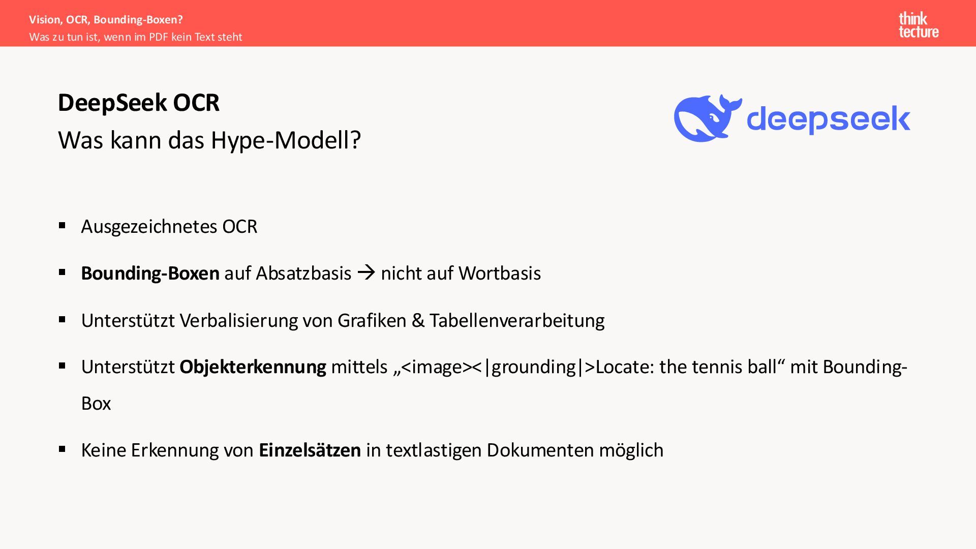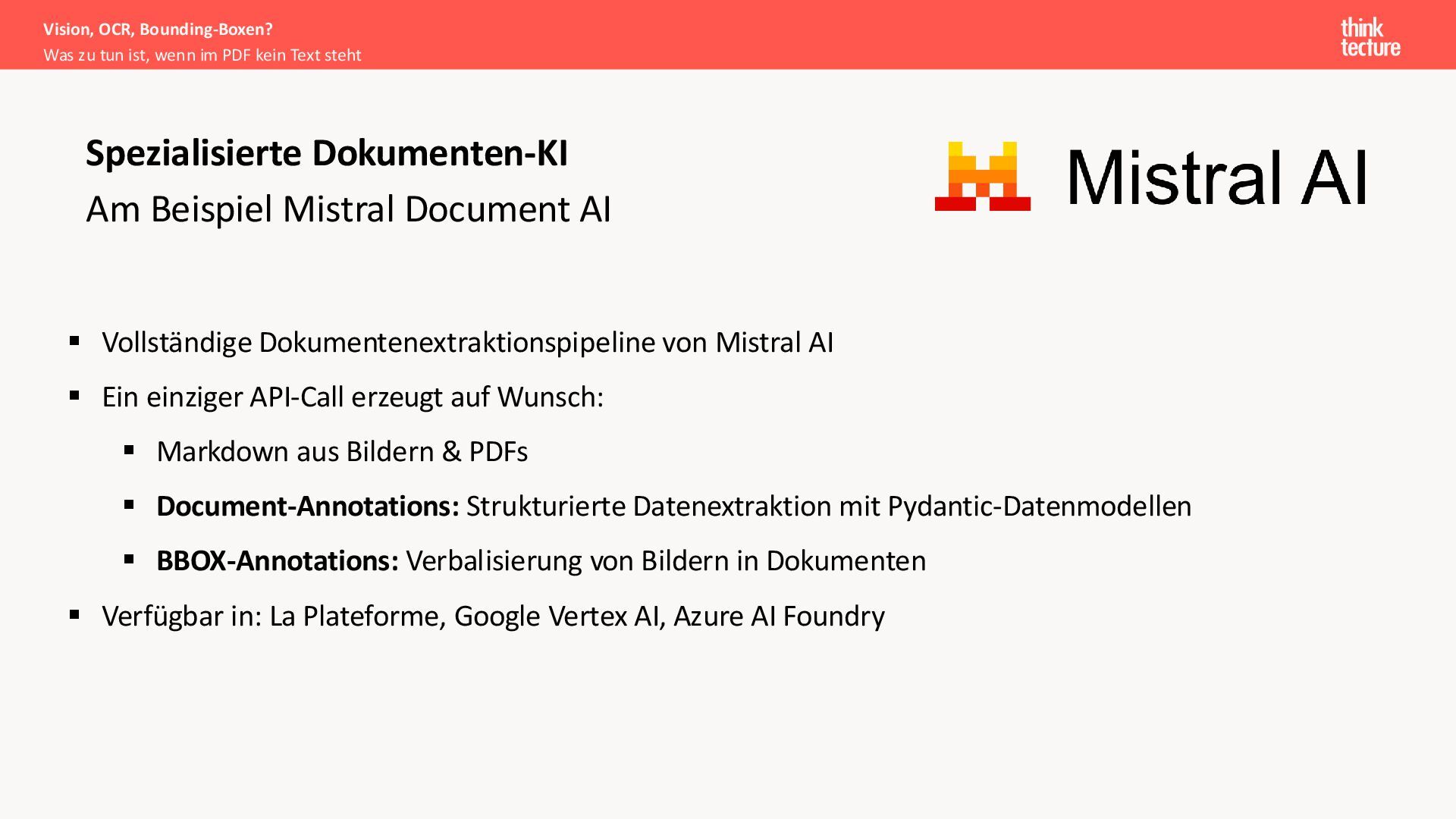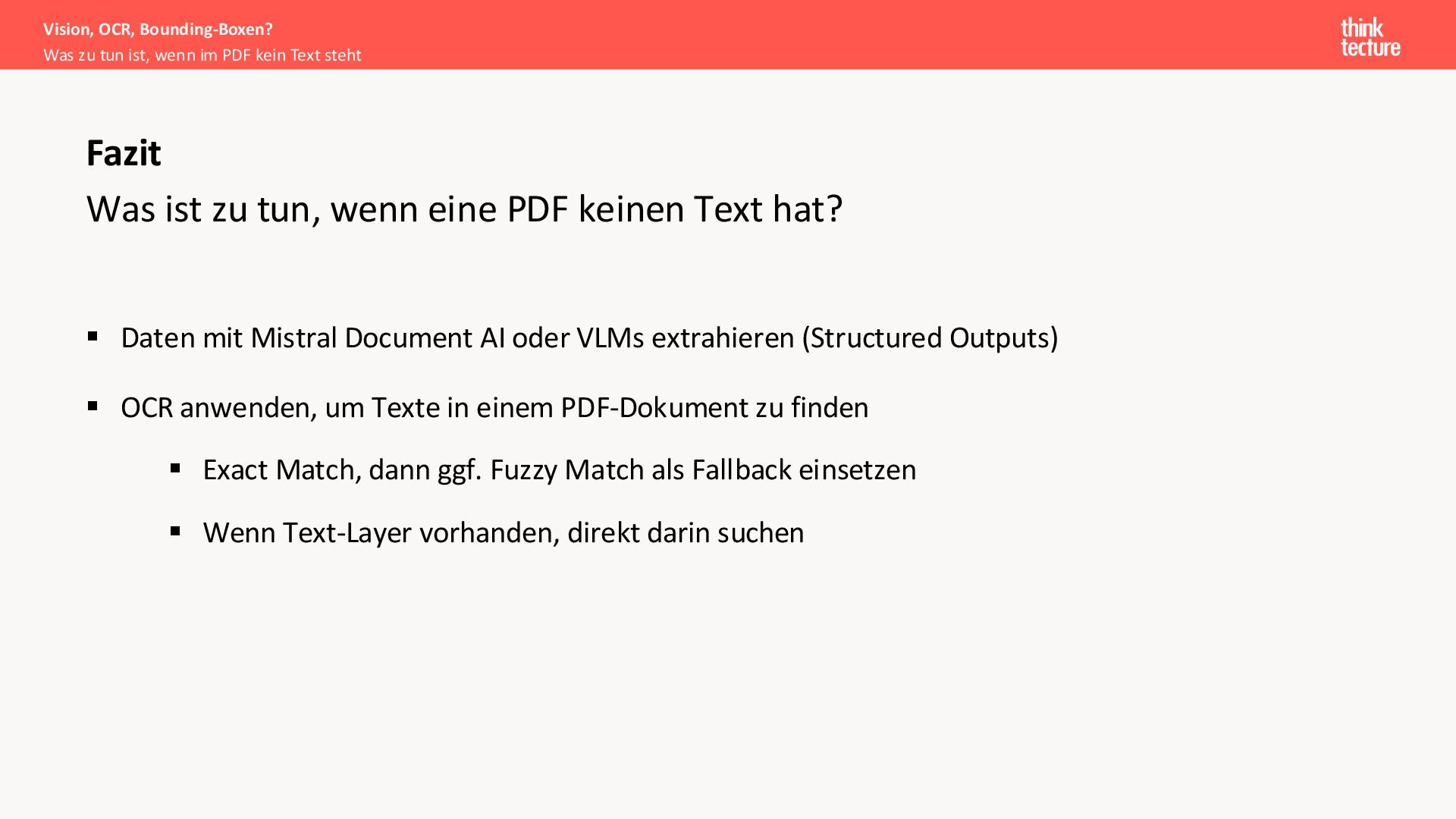 Document AI kann der Schlüssel zur Erschließung wertvoller Informationen aus historischen und aktuellen Dokumentenbeständen sein. In diesem Vortrag zeigt Lukas Köhler praxisnahe Ansätze für die Verarbeitung von PDFs mit und ohne Text-Layer sowie die Generierung belastbarer Zitate mit präzisen Bounding-Boxen. Wichtige Konzepte wie Annotation-Workflows, der Einsatz spezialisierter Modelle wie Mistral Document AI und DeepSeek OCR sowie Matching-Strategien werden anhand eines Proof of Concept demonstriert. Entwickler und Architekten erhalten einen pragmatischen Überblick über die mögliche Implementierung nachvollziehbarer Datenextraktion in eigenen Projekten.