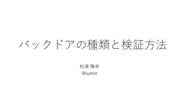 バックドアの種類と検証方法 杉浦 隆幸 @lumin