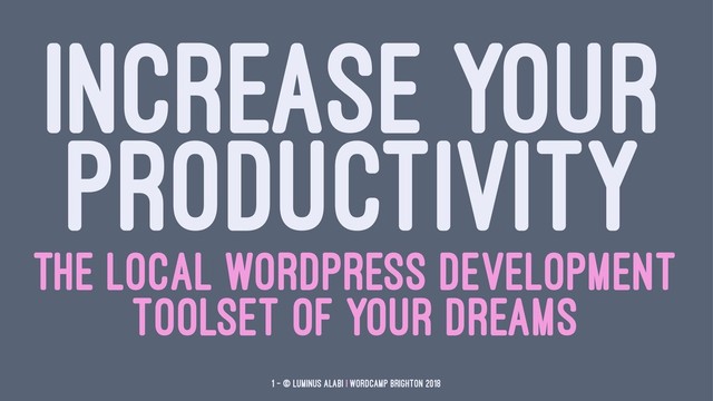 dbpass: root extra-php: | define('WP_DEBUG', true); define('WP_DEBUG_LOG', true); define('WP_DEBUG_DISPLAY', false); @ini_set('display_errors',0); define( 'WCS_DEBUG', true ); 5 https://gist.github.com/Luminus/45e886809c81e325894a0825374065ec 32 — © Luminus Alabi | WordCamp Brighton 2018