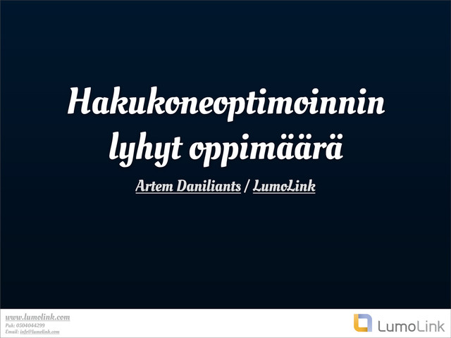 (Wannabe) sarjayrittäjä • Jo lukioaikana loin ison internetportaalin • Toimin LumoLink-nimisessä yrityksessä 3 vuotta • LumoLink on sähköiseen markkinointiin erikoistunut yritys Oulussa