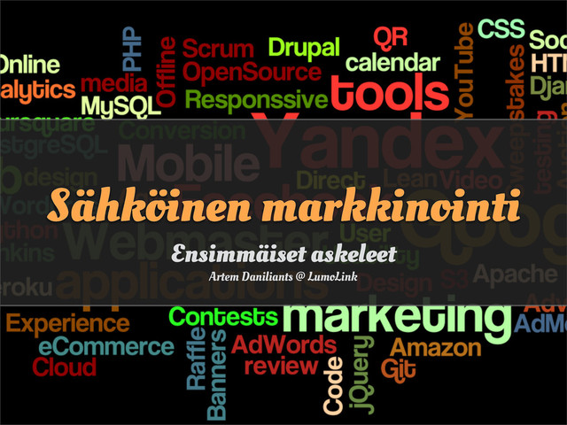 ja markkinointialan yritys • Erikoistunut laittestoriipumattomien web-ratkaisujen kehittämiseen ja sähköiseen markkinointiin • Erikoisosaaminen on sähköinen markkinointi venäjällä ja markkinointisovelluksien kehittäminen Facebook:iin