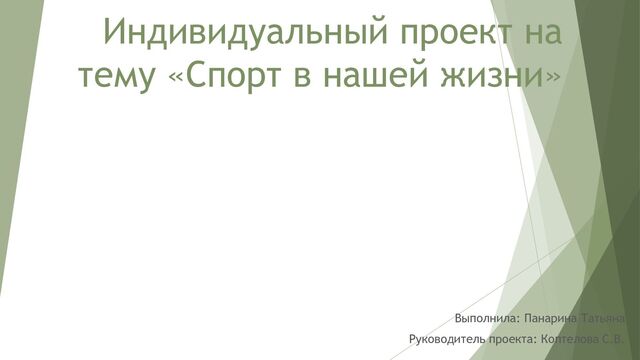 простудным заболеваниям. Древнеримский поэт Гораций говорил: «Если не бегаешь, пока здоров, придётся побегать, когда заболеешь». Спорт развивает тело физически, что приводит к профилактике большого количества заболеваний, улучшению качества жизни, а также её продлению. Кроме того, спортивные люди чувствуют себя более уверенно, а значит более успешны в работе, учёбе и других ситуациях. Заключение: Физическая активность должна присутствовать в жизни каждого человека в независимости от возраста. Не обязательно быть профессиональным спортсменом, чтобы получать пользу и удовольствие от занятий спортом. Многие люди бегают по утрам, ходят на аэробику и фитнес, играют в футбол. А вместе с тем, это делает их сильными, а также дает возможность знакомиться со многими интересными личностями. Не ставьте перед собой цель обязательно побить мировой рекорд. Поставьте перед собой более скромную задачу: укрепить свое здоровье, вернуть себе силу и ловкость, Спорт должен выступать спутником каждого человека на протяжении всей его жизни – только в таком случае возможно добиться желаемых результатов.
