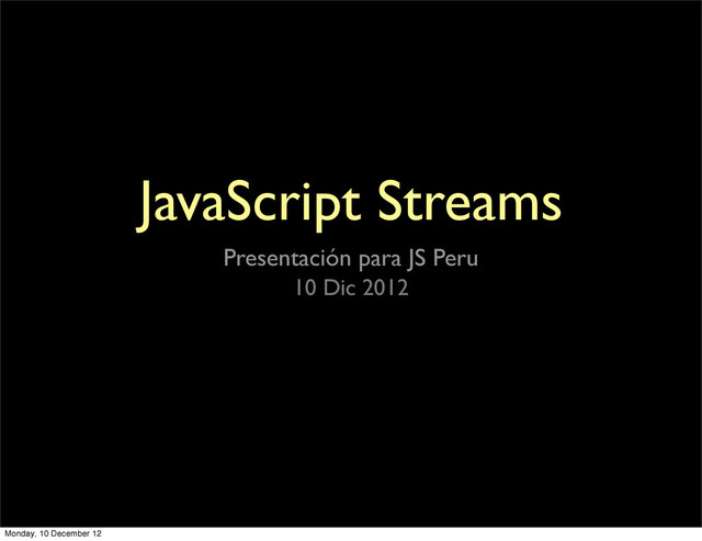 (single thread event loop) • Porque resulta no ser lo que creíamos que era • Porque tiene muy buenas partes (funciones, closures, lexical scoping, ...) • Porque se adapta con naturalidad a un paradigma asíncrono basado en eventos Monday, 10 December 12