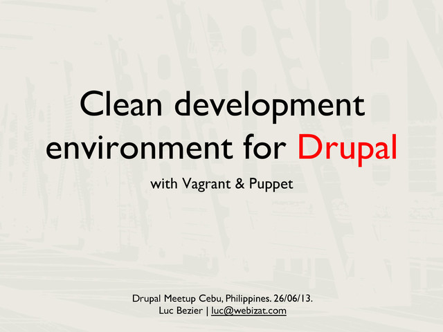 computer`s OS - Creates a high dependency between your system and you development environment - You development environment will never be like production. Drupal, Vagrant & Puppet [email protected] | @Luukyb