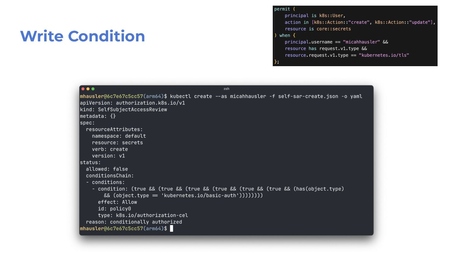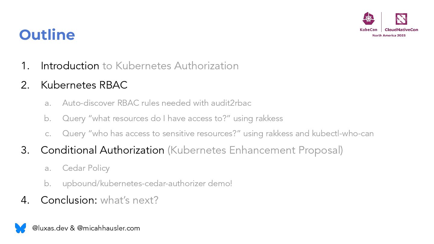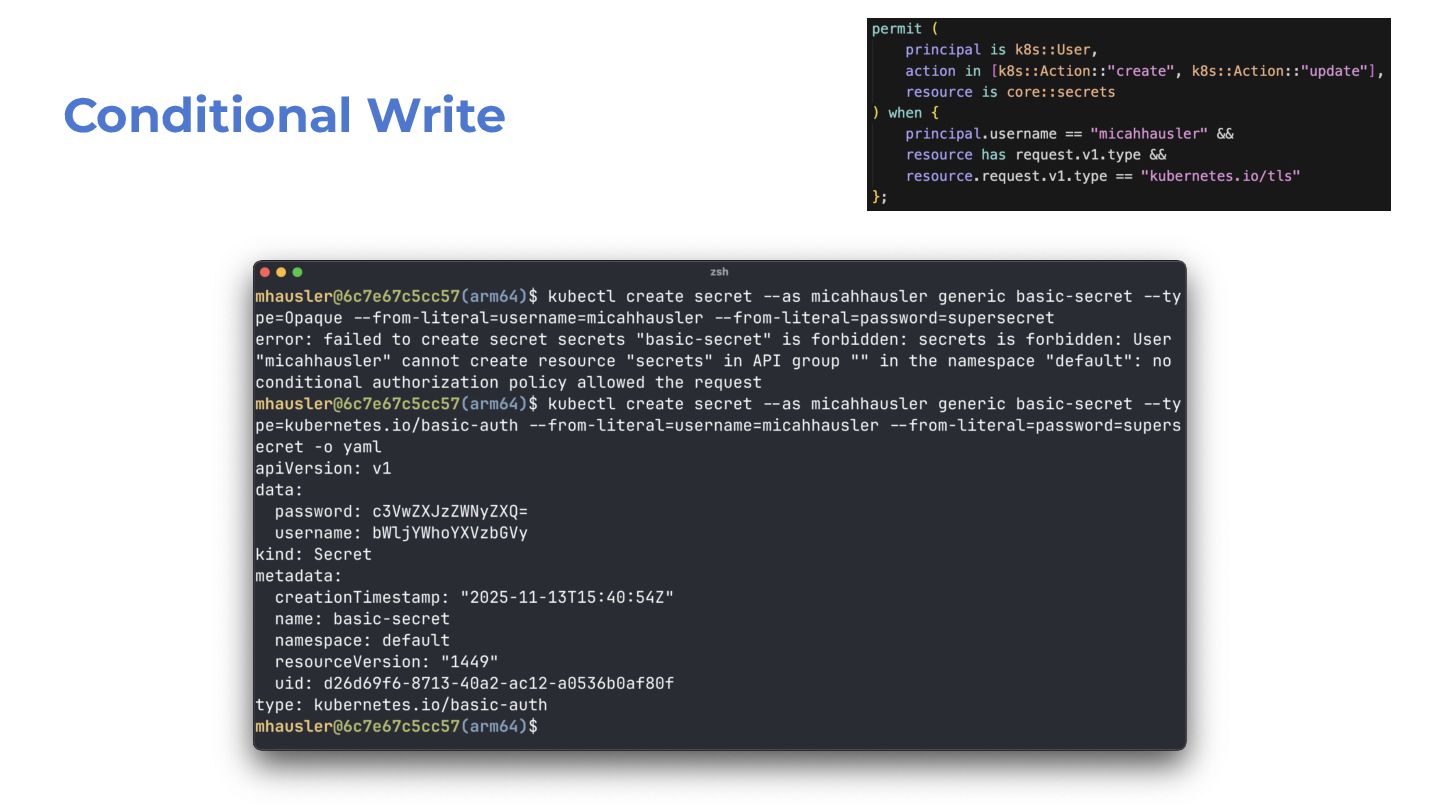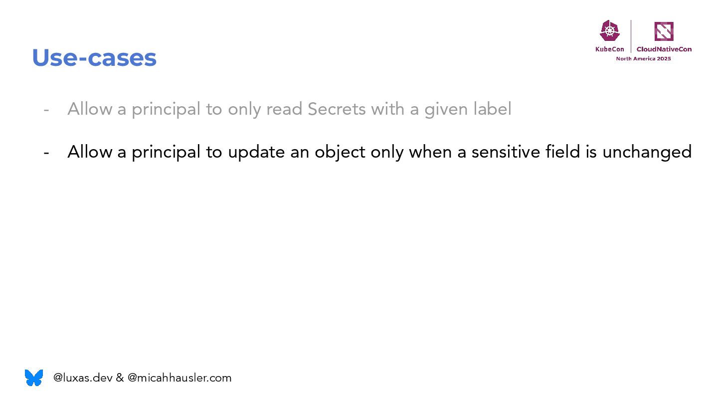 This talk is part of a journey to improve Kubernetes access control in core. However, to make this initiative successful, user feedback is needed throughout the process. You’ll learn about the planned Kubernetes Conditional Authorization feature, which will make authoring right-sized policies easier.