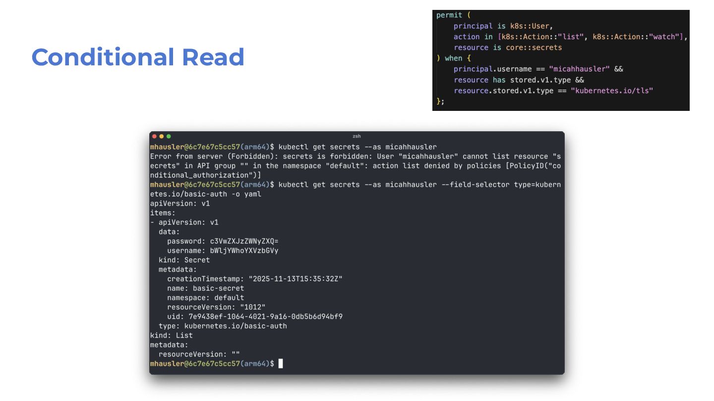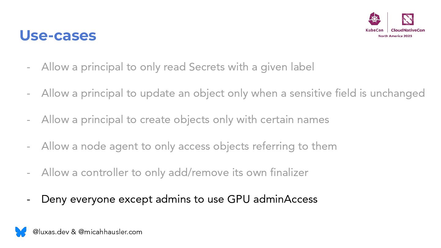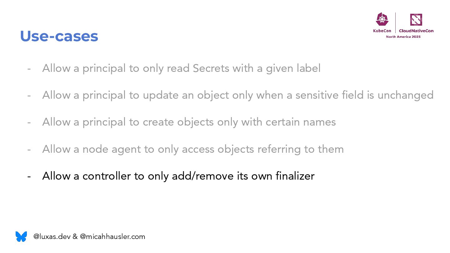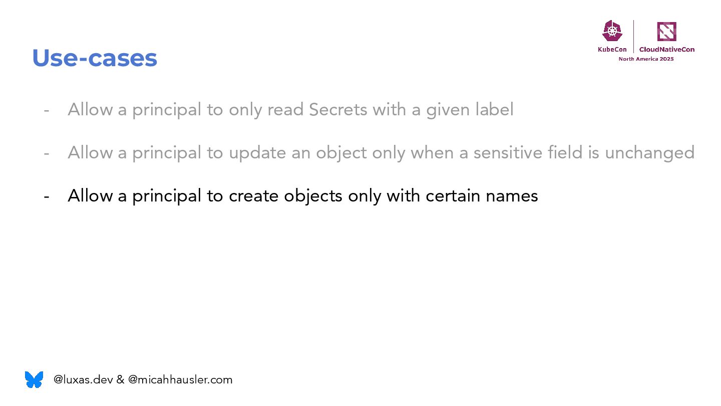 This talk is part of a journey to improve Kubernetes access control in core. However, to make this initiative successful, user feedback is needed throughout the process. You’ll learn about the planned Kubernetes Conditional Authorization feature, which will make authoring right-sized policies easier.
