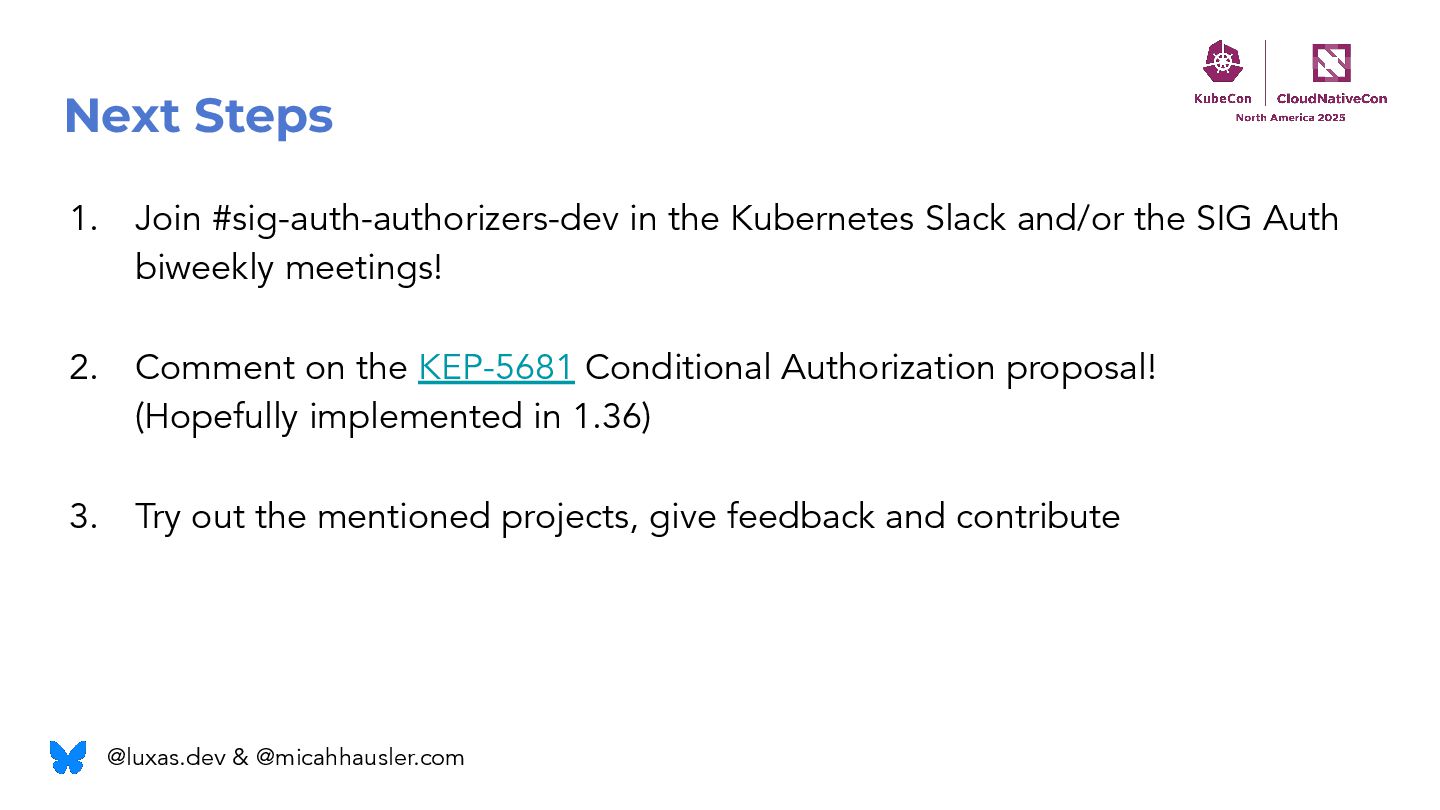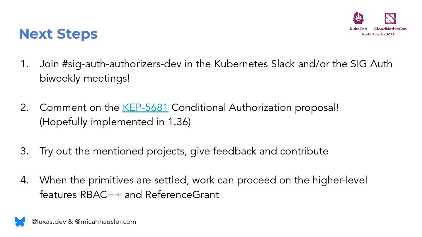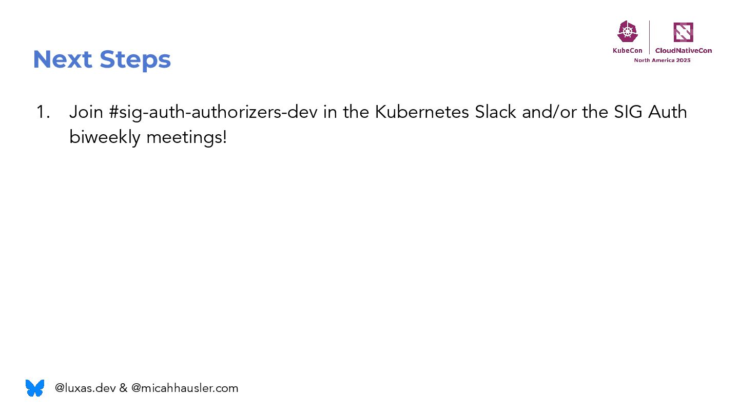 By the end of the talk, you will know how to get involved, and future directions for improved Kubernetes access control.