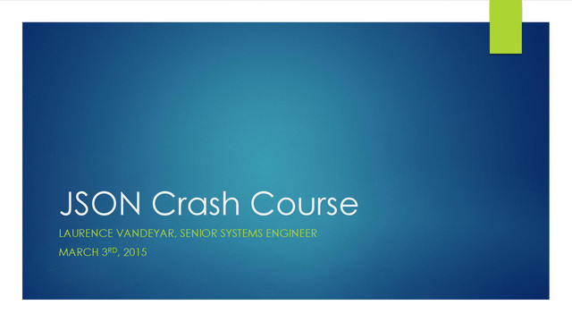 JSON Crash Course LAURENCE VANDEYAR, SENIOR SYSTEMS ENGINEER MARCH 3RD,