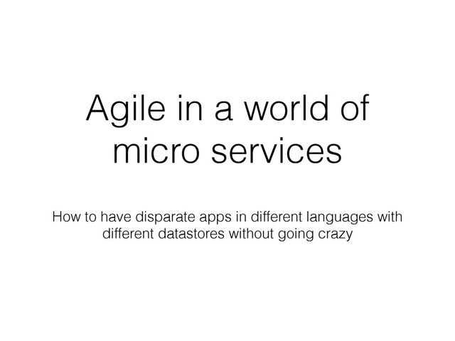 Microservices are great - but if you are not careful you have just created a new set of silos. And response time is through the floor because a new service you have never heard of is hammering your app.The right tooling helps - but communication is even more important. This talk will discuss how to build the kind of culture you need to make micro services work.