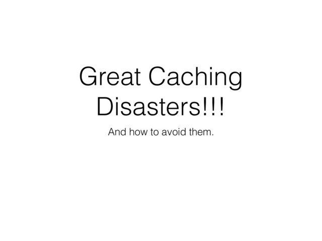 Great Caching Disasters!!! And how to avoid them.