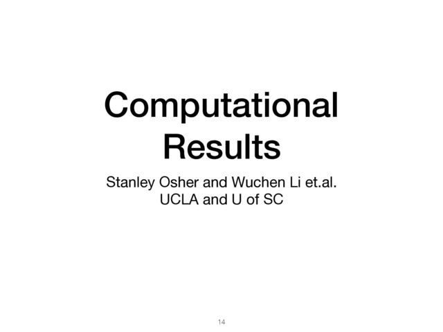 t L(“(s), s, –(s))ds + g(“(T)): “(t) = x, ˙ “(s) = f (“(s), s, –(s))’s œ (t, T) < , (1) and the corresponding Hamilton-Jacobi (HJ) PDE Y ] [ ˆÏ(x, t) ˆt + sup –œRm {≠Èf (x, T ≠ t, –), Òx Ï(x, t)Í ≠ L(x, T ≠ t, –)} = 0, x œ , t œ [0, T], Ï(x, 0) = g(x), x œ . (2) Grid based method (e.g., Lax–Friedrichs, Engquist-Osher scheme) needs to satisfy the CFL condition in discretization. In this project, we provide an optimization method for solving certain HJ PDEs with a saddle point formulation and implicit time discretization. This allows us to choose a larger time stepsize and avoid CFL condition. In the literature, there are some optimization algorithms for solving HJ PDE [Darbon, Dower, Osher, Yegerov, . . . ]. Compared to these methods, the optimization algorithm proposed in this project can handle a more general Hamiltonian that depends on (x, t). Partial theoretical guarantee is provided. Meng, Liu, Li, Osher PDHG control August 4, 2024 2 / 5