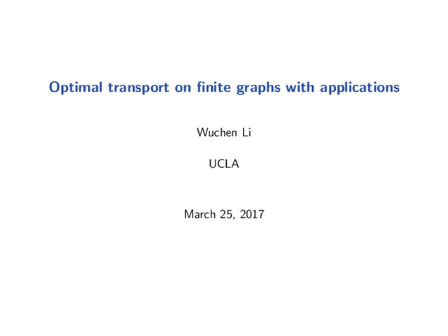 Consider inf π Rd×Rd c(x, y)π(x, y)dxdy where the infimum is taken among all joint measures (transport plans) π(x, y) having ρ0(x) and ρ1(y) as marginals, i.e. Rd π(x, y)dy = ρ0(x) , Rd π(x, y)dx = ρ1(y) , π(x, y) ≥ 0 . In literatures, c is the ground cost function, usually chosen as c(x, y) = dist(x, y)p , p = 1, 2 . It is worth mentioning when p = 1, the minimization turns out to be a particular problem in compressed sensing. 4