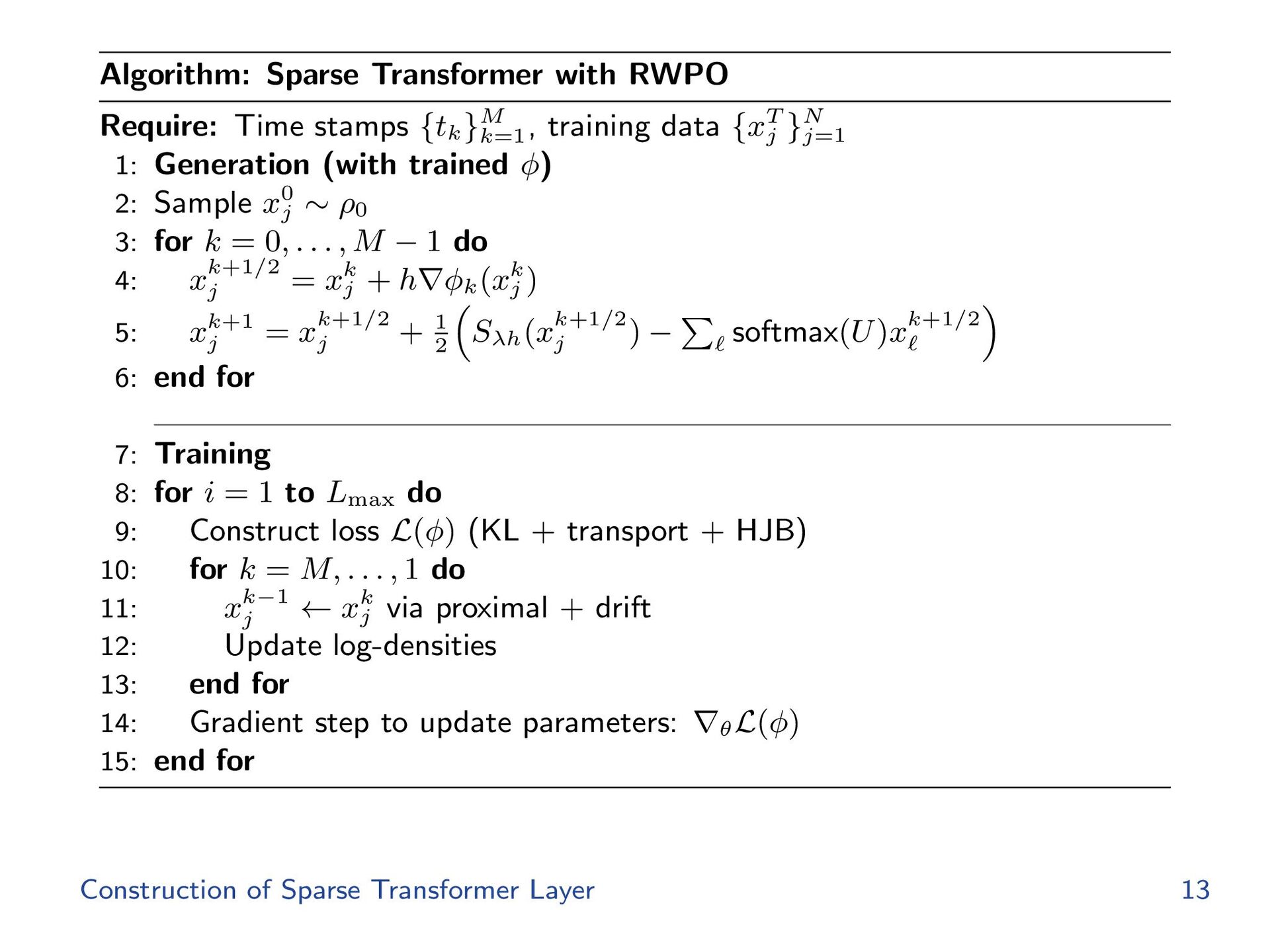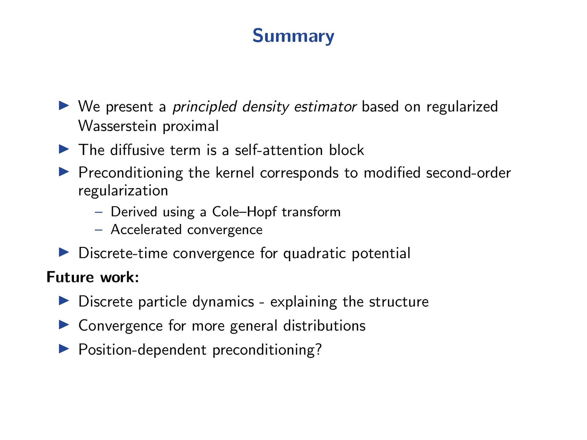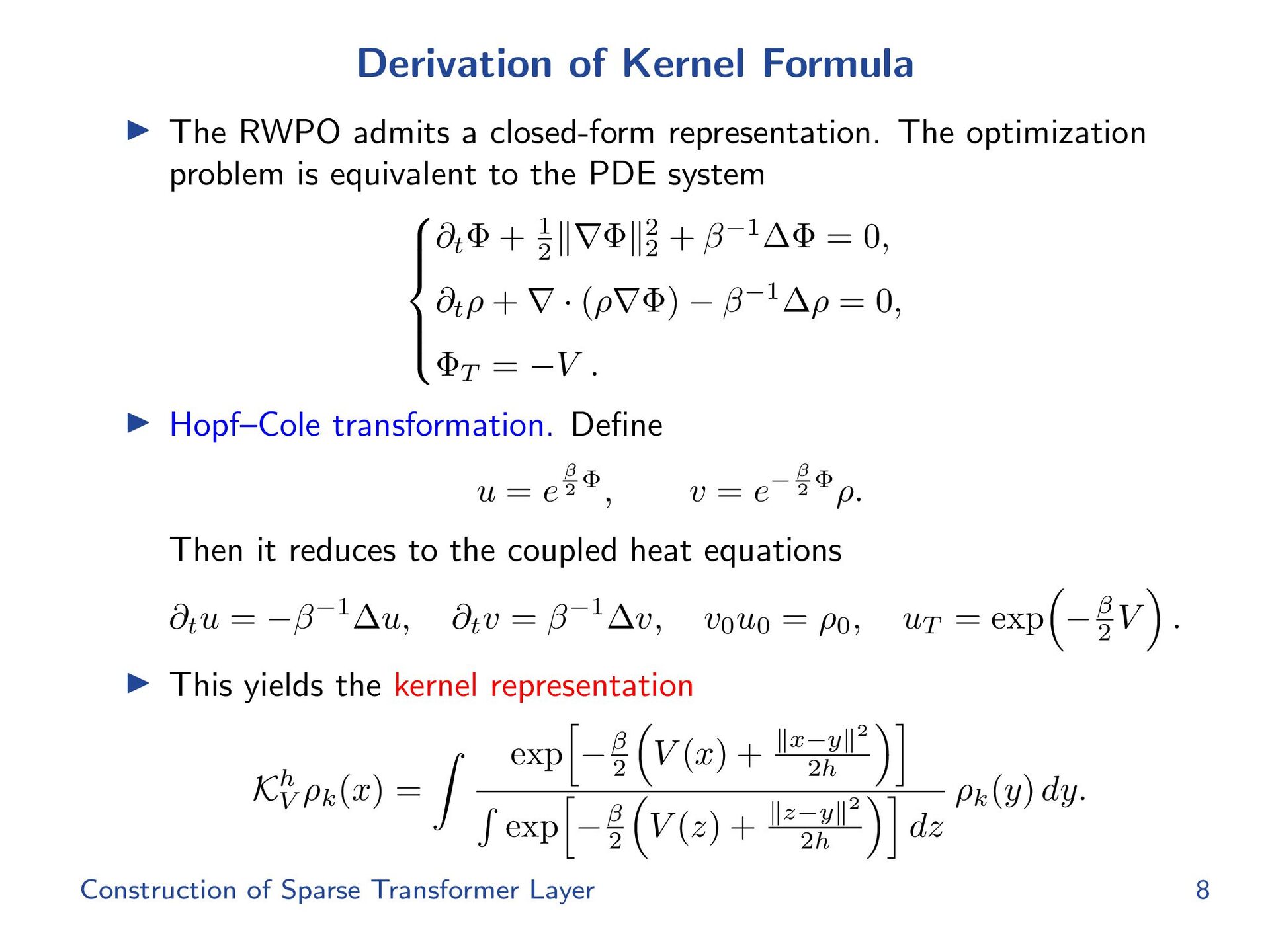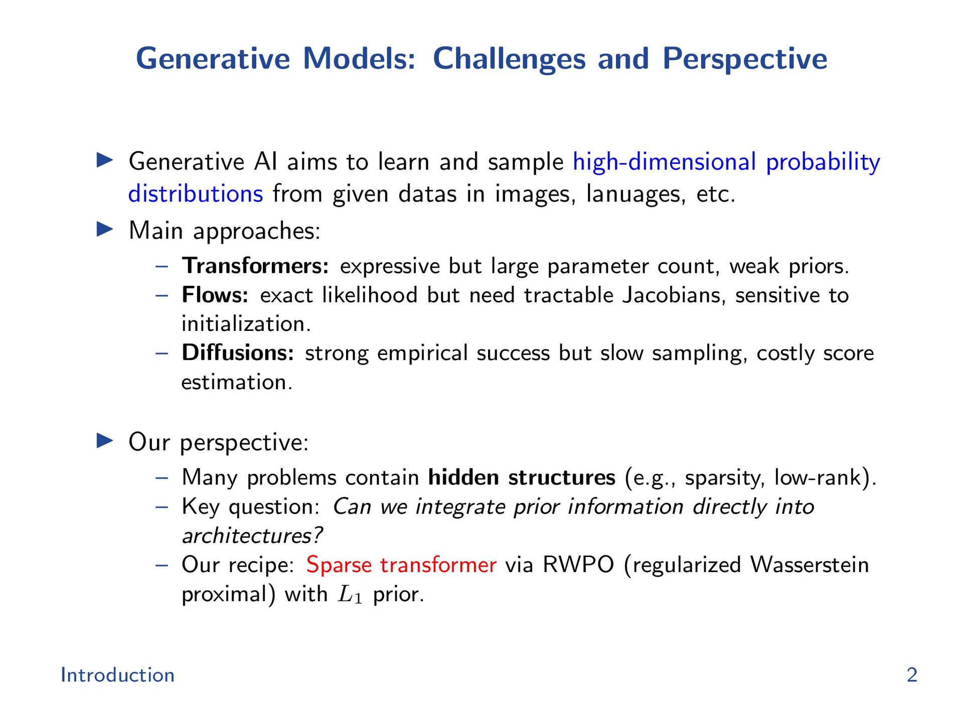 We present a unified framework connecting sampling algorithms, optimal transport, and transformer architectures. The approach introduces a preconditioned, noise-free sampling method based on the regularized Wasserstein proximal operator, derived via a Cole–Hopf transformation on anisotropic heat equations. Extending this connection, we design a sparse transformer architecture that embeds an L₁ prior to enhance convexity and promote sparsity of the learning problem. Theoretical results show non-asymptotic convergence with explicit bias characterization, and experiments demonstrate improved efficiency and accuracy across Bayesian neural networks, Bayesian inverse problems, and generative modeling of image distributions.