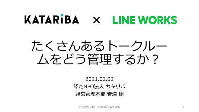 たくさんあるトークルー ムをどう管理するか? 2021.02.02 認定NPO法人 カタリバ 経営管理本部 岩澤 樹 © KATARIBA