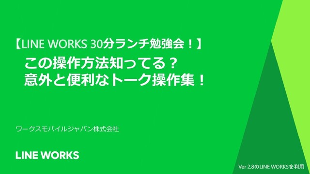 【LINE WORKS 30分ランチ勉強会!】 この操作方法知ってる? 意外と便利なトーク操作集! ワークスモバイルジャパン株式会社 Ver 2.8のLINE WORKSを利用