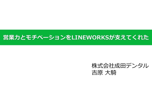 吉原 大騎(38歳) 株式会社成田デンタル 総務部システム担当兼 営業推進部マーケティング担当 #LINEWORKSの歯科業界への浸透 #Cyobozu #MotionBoard #ExcelVBA #SNSマーケティング