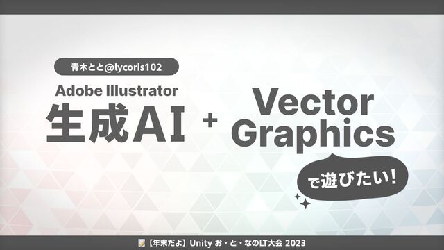 📝【年末だよ】Unity お・と・なのLT大会 2023 生成AI Adobe Illustrator Vector Graphics + で遊びたい!
