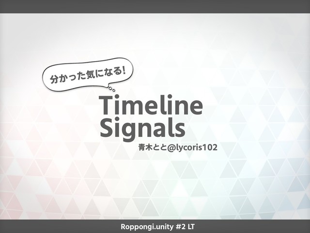 Roppongi.unity #2 LT 分かった気になる! Timeline Signals 青木とと@lycoris102
