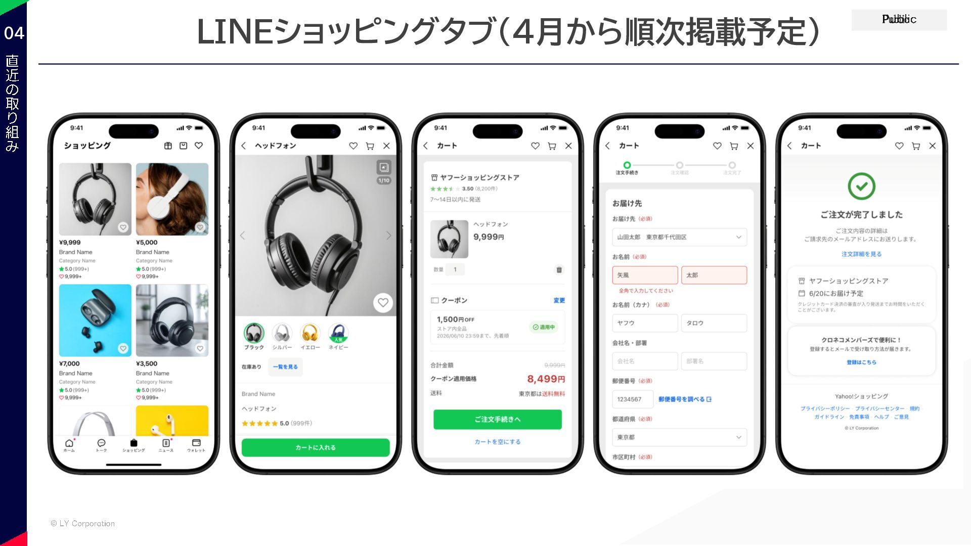 Public © LY Corporation 04 LINEショッピングタブ(4月から順次掲載予定) 直近の取り組み