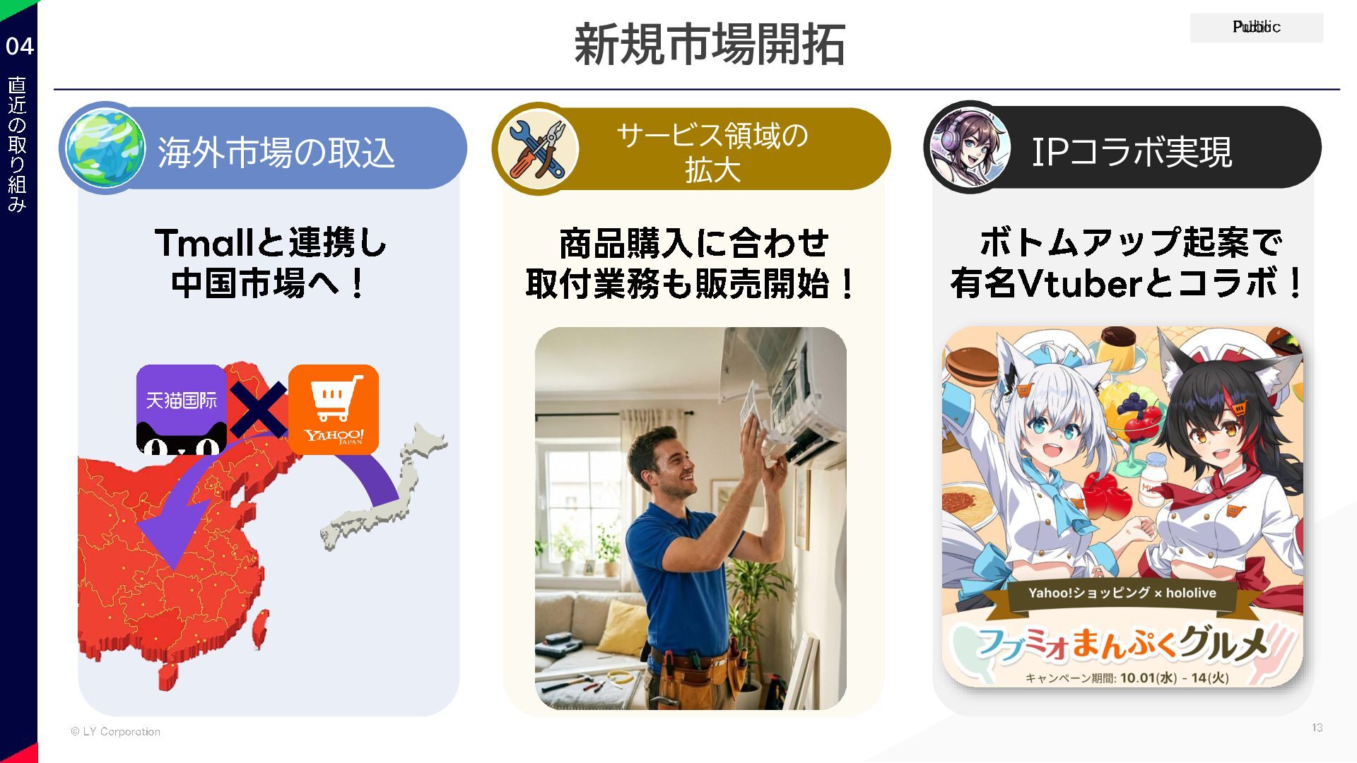 Public © LY Corporation 04 新規市場開拓 海外市場の取込 商品購入に合わせ 取付業務も販売開始! ボトムアップ起案で