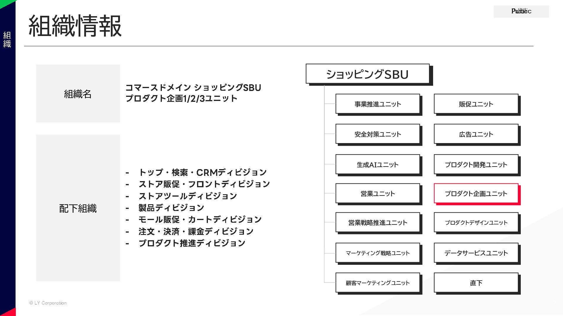 Public © LY Corporation コマースドメイン ショッピングSBU紹介資料 ※公開:2026.04(内容は公開時点の情報です) <プロダクト企画ユニット>