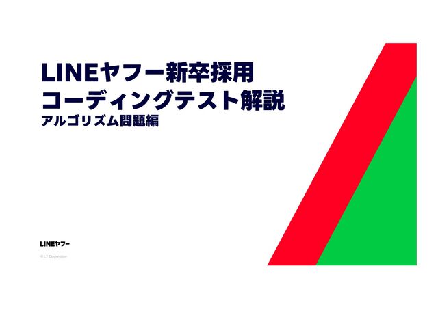 LINEヤフー株式会社公式YouTubeの「LINEヤフー新卒採用 コーディングテスト解説 アルゴリズム問題編(https://www.youtube.com/watch?v=ny0kPAzV7lM)」にて使用している資料です。