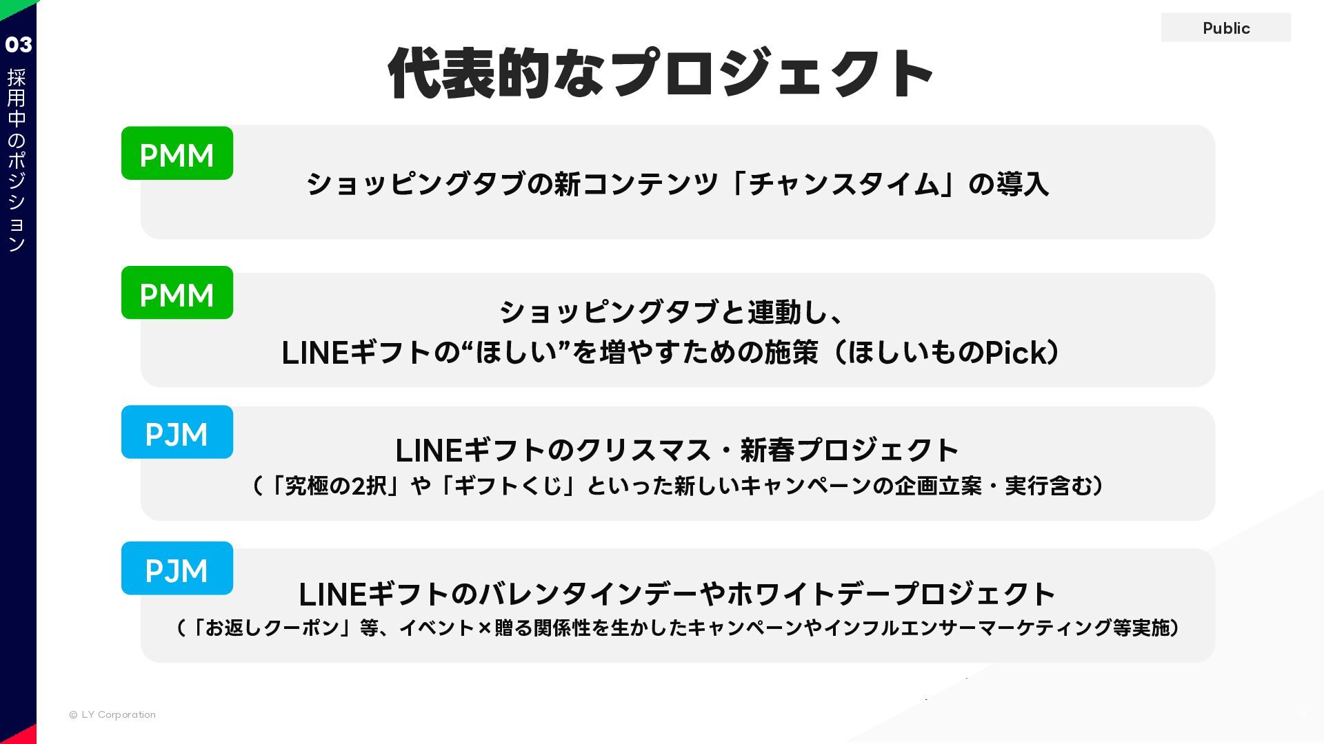 Public © LY Corporation 採用中のポジション 10 03