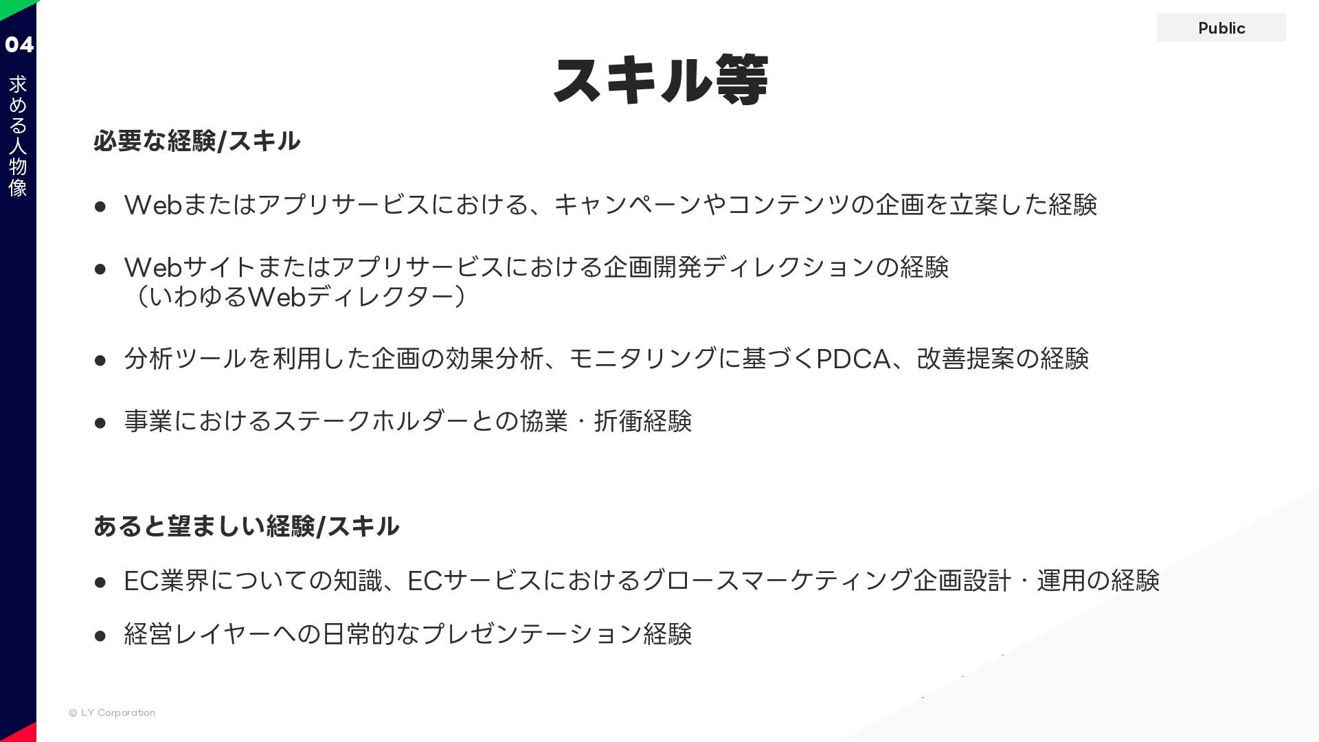 Public © LY Corporation 求める人物像 15 04