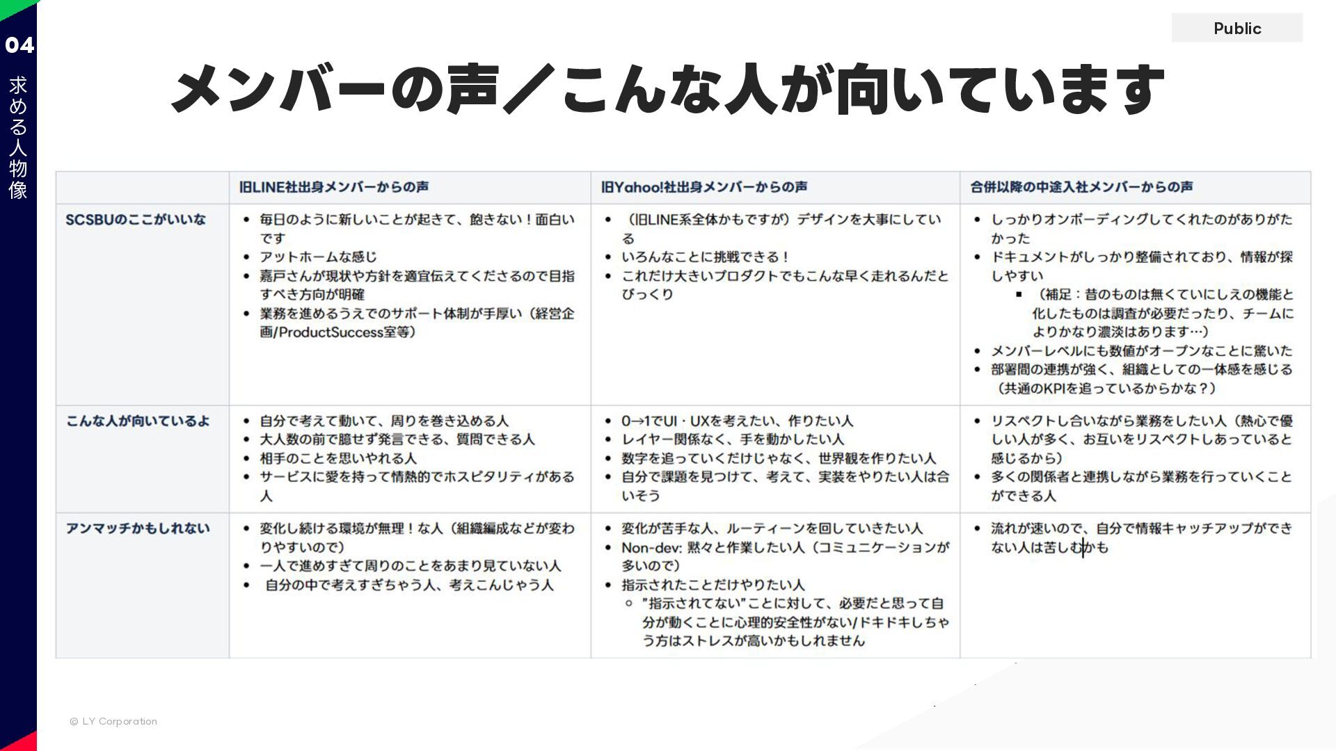 Public © LY Corporation 04 メンバーの声/こんな人が向いています 求 め る 人