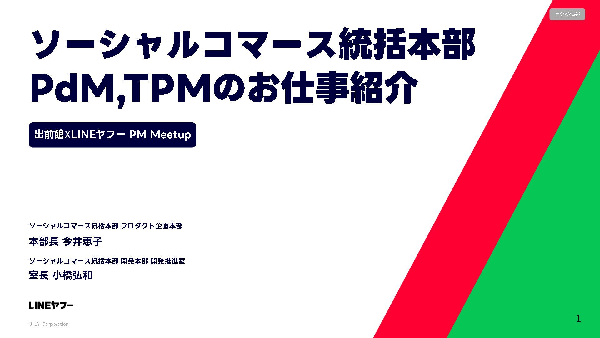 ソーシャルコマース統括本部 PdM,TPMのお仕事紹介について説明した資料です。
