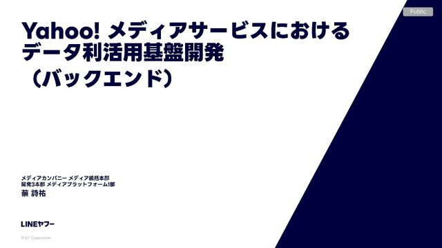Yahoo! メディアサービスにおけるデ ータ利活用基盤開発について説明した資料です。