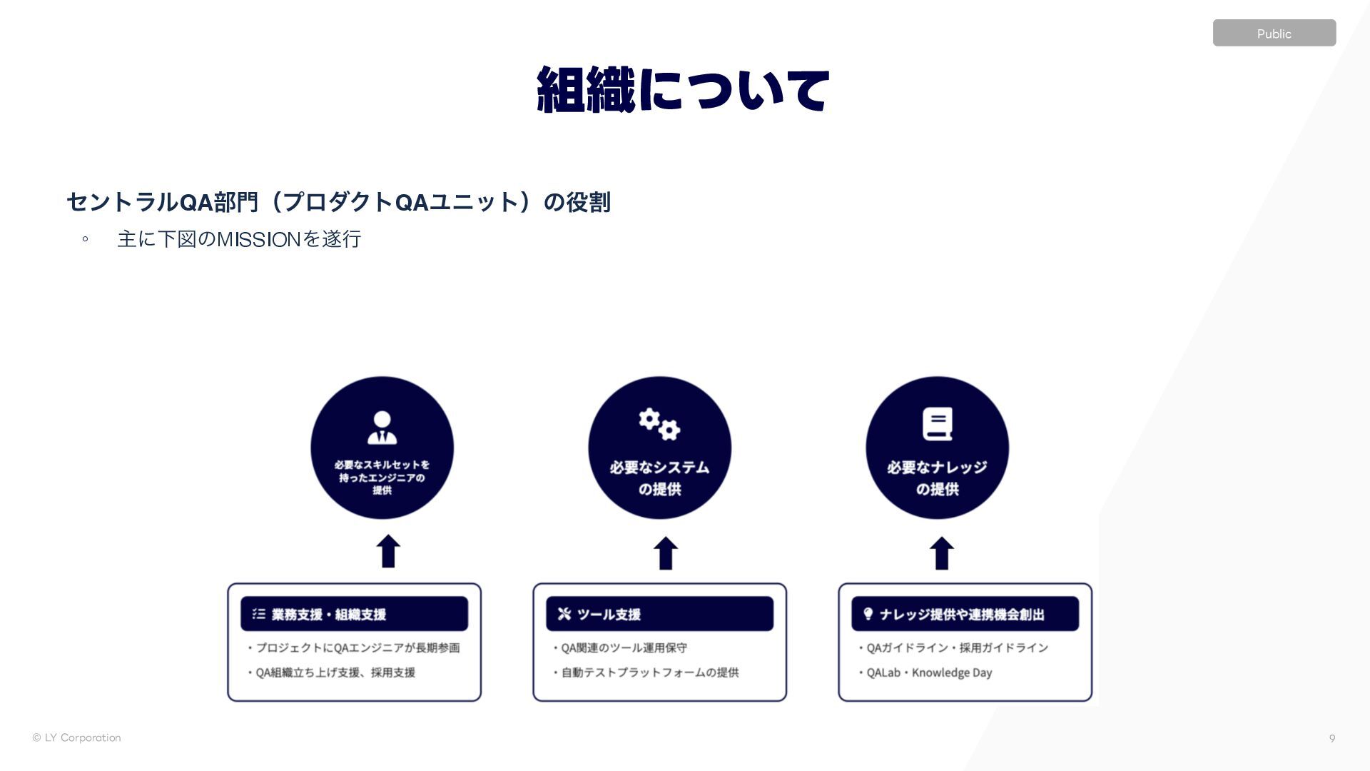 *OUFSOBM6TF0OMZ -:$PSQPSBUJPO 1VCMJD ৫ʹ͍ͭͯ ηϯτϥϧQA෦ʢϓϩμΫτQAϢχοτʣͷׂ ◦ ओʹԼਤͷMISSIONΛߦ ◦ ࣗಈςετϓϥοτϑΥʔϜͷӡ༻ɺπʔϧࢧԉ෦͕୲