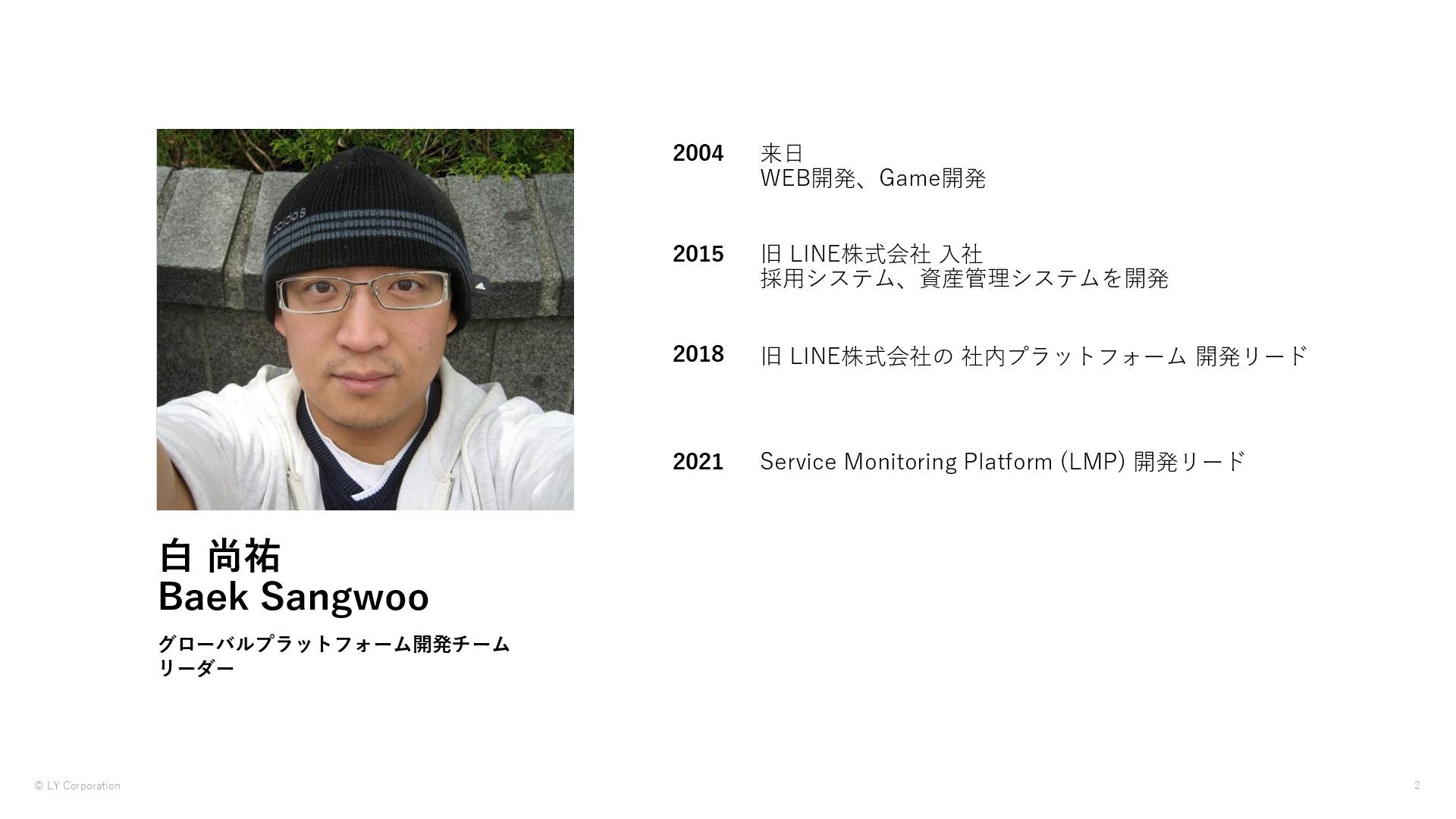© LY Corporation 白 尚祐 Baek Sangwoo グローバルプラットフォーム開発チーム リーダー 2