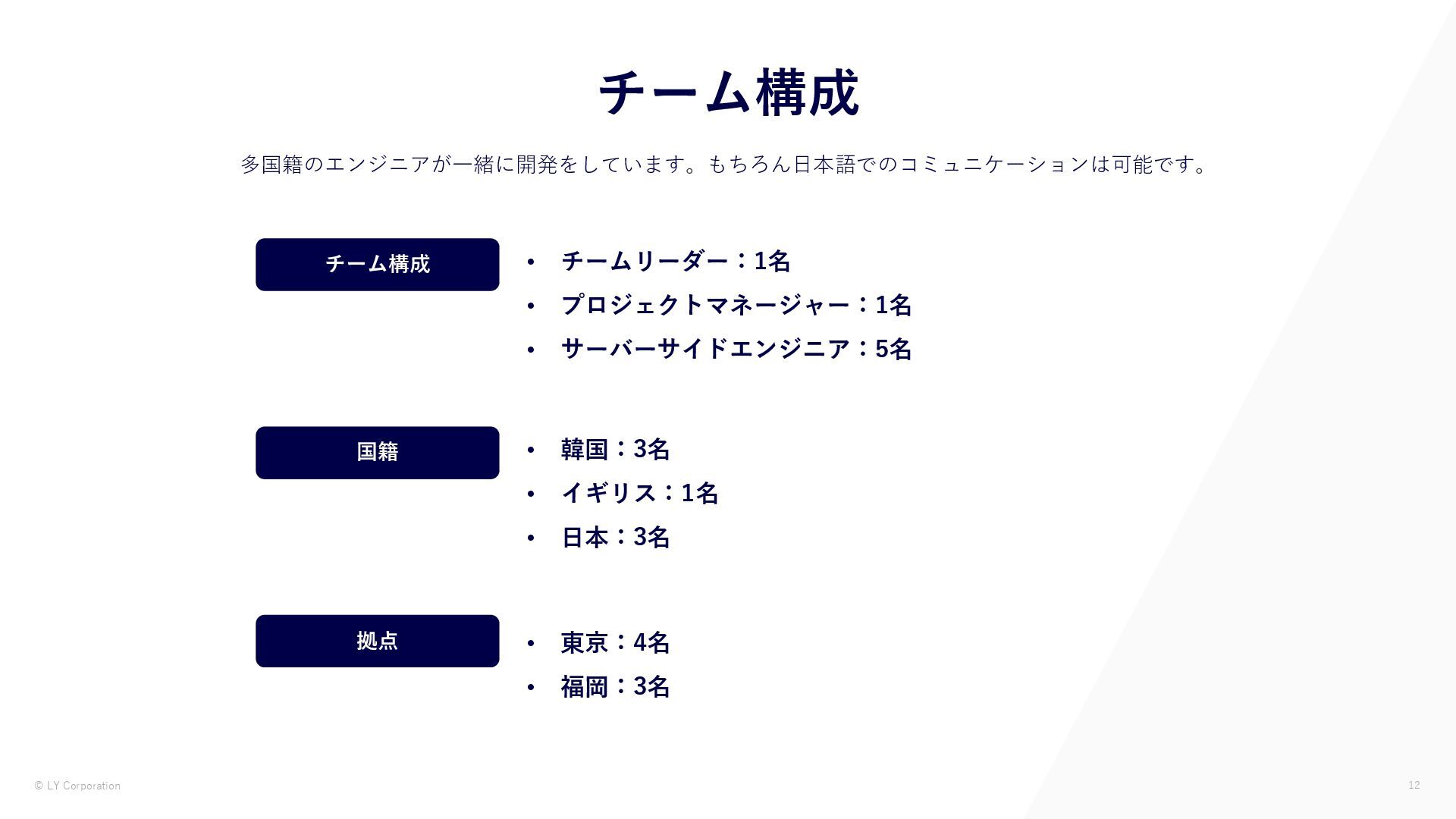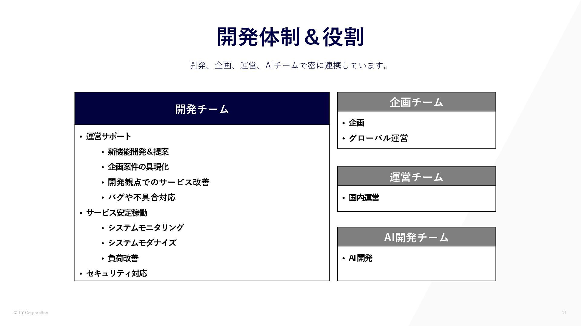 © LY Corporation Internal Use Only 11 開発体制&役割 開発チーム •