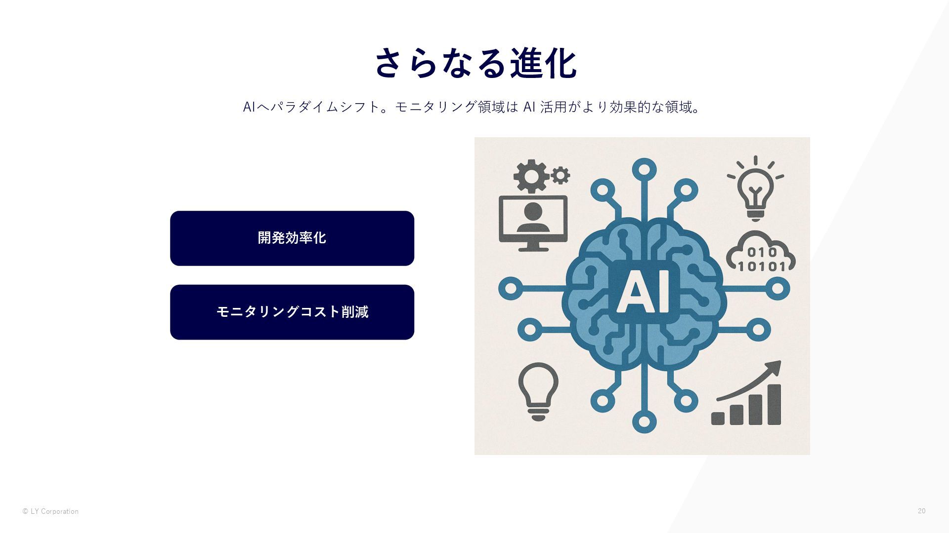 © LY Corporation Internal Use Only 20 さらなる進化 AIへパラダイムシフト。モニタリング領域は AI