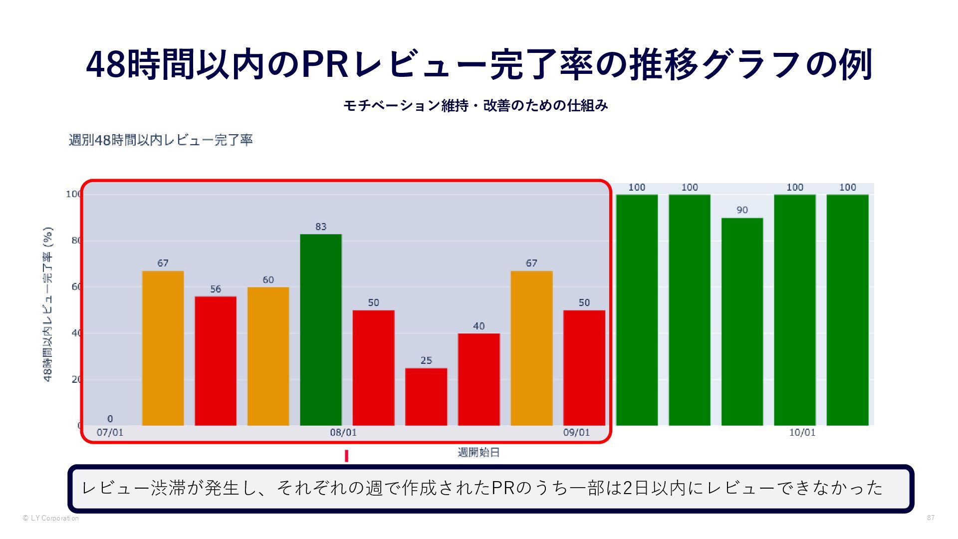 57. © LY Corporation 改善効果が見えない モチベーション維持が困難 データ分析基盤の構築が大変 導入後 91 レビュー効率の可視化のメリット 導入前