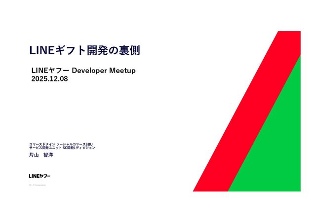© LY Corporation LINEギフト開発の裏側 コマースドメイン ソーシャルコマースSBU サービス開発ユニット SC開発1ディビジョン ⽚⼭ 智洋