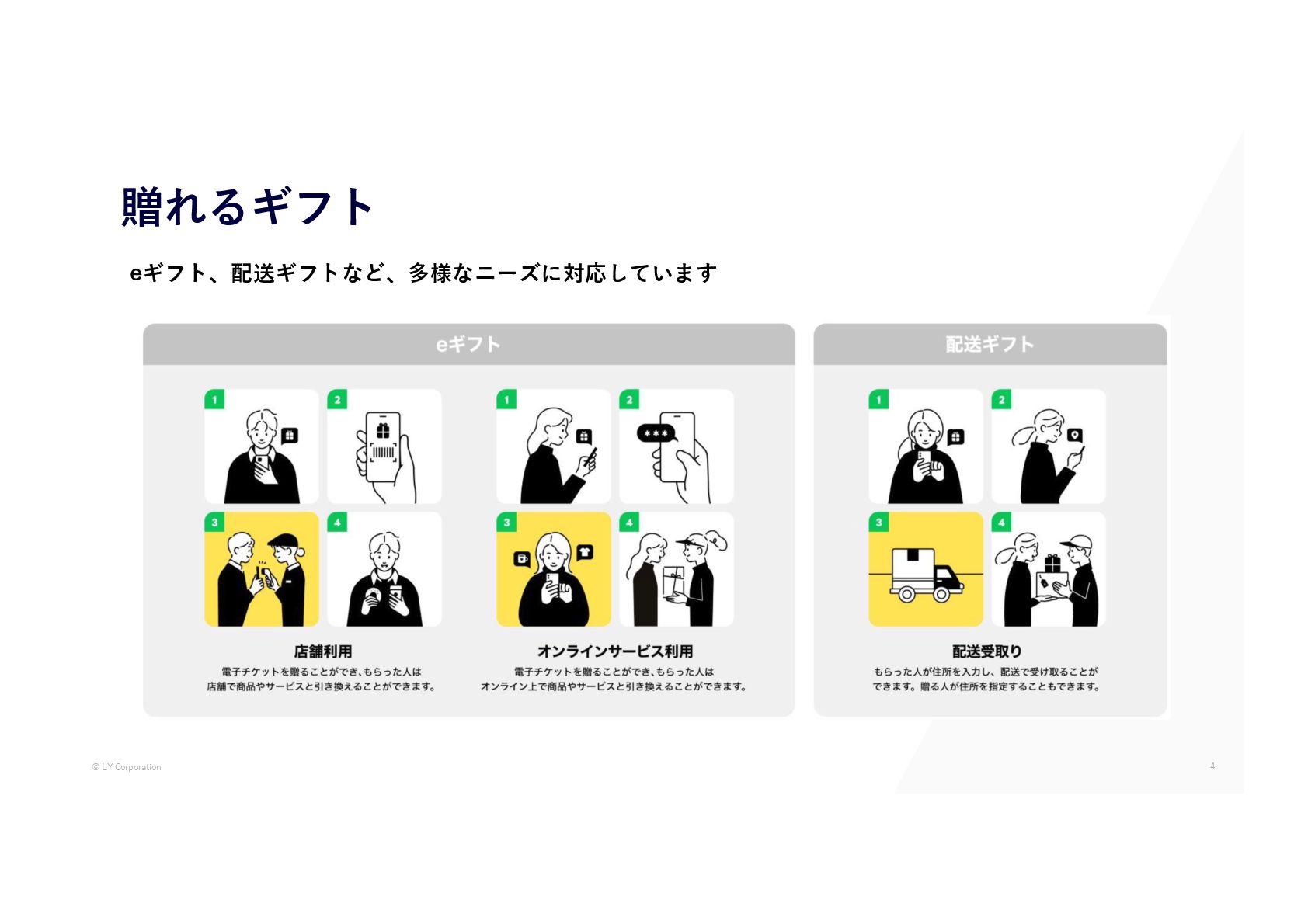 © LY Corporation 贈れるギフト 4 eギフト、配送ギフトなど、多様なニーズに対応しています
