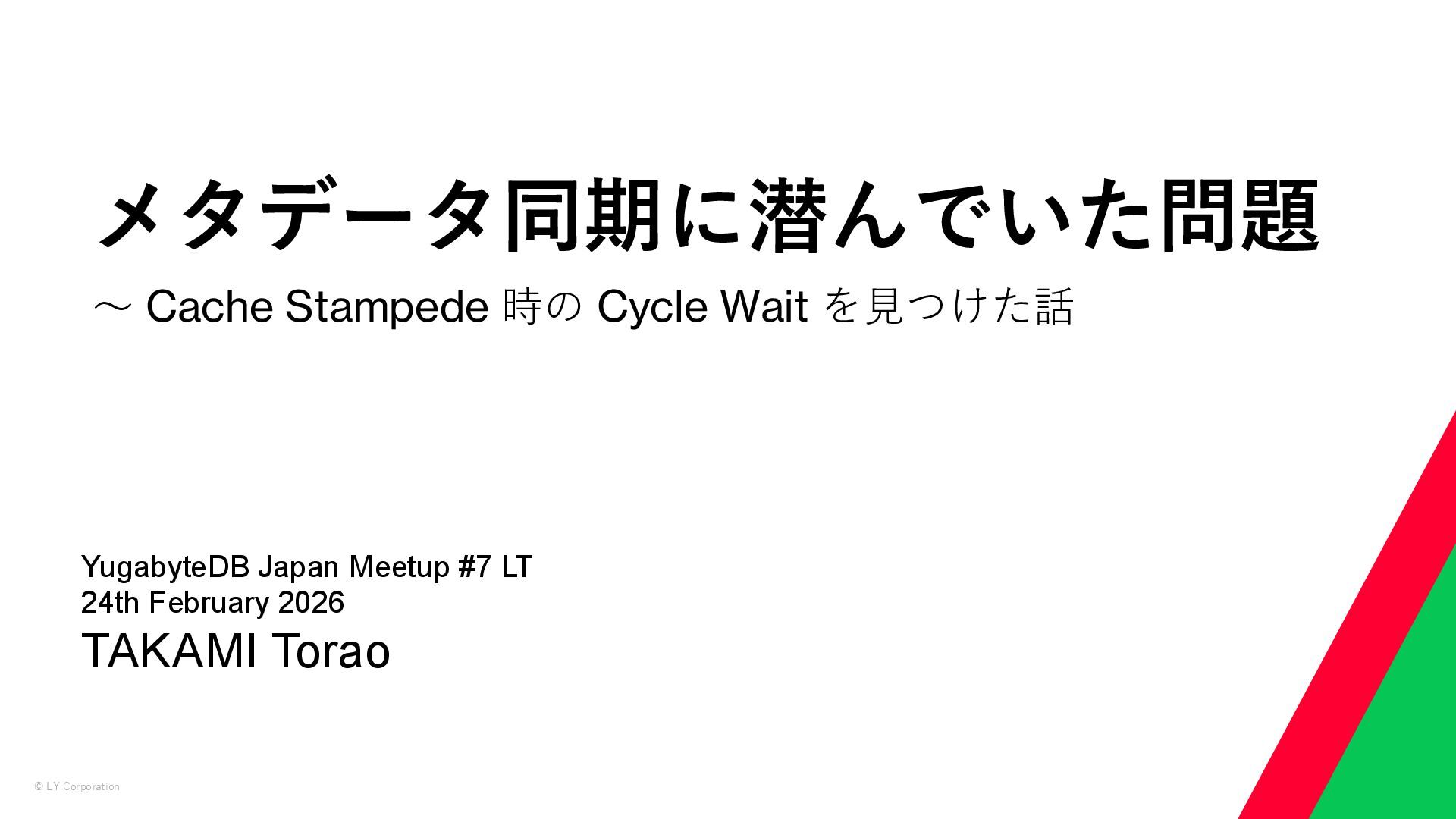 を見つけた話 YugabyteDB Japan Meetup #7 LT 24th February 2026 TAKAMI Torao
