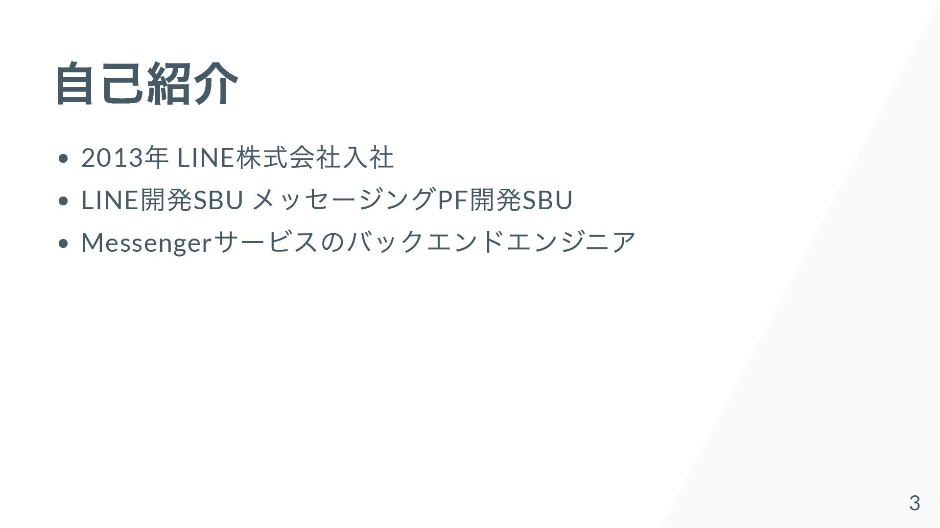 自己紹介 2013 年 LINE 株式会社入社 LINE 開発SBU メッセージングPF 開発SBU Messenger