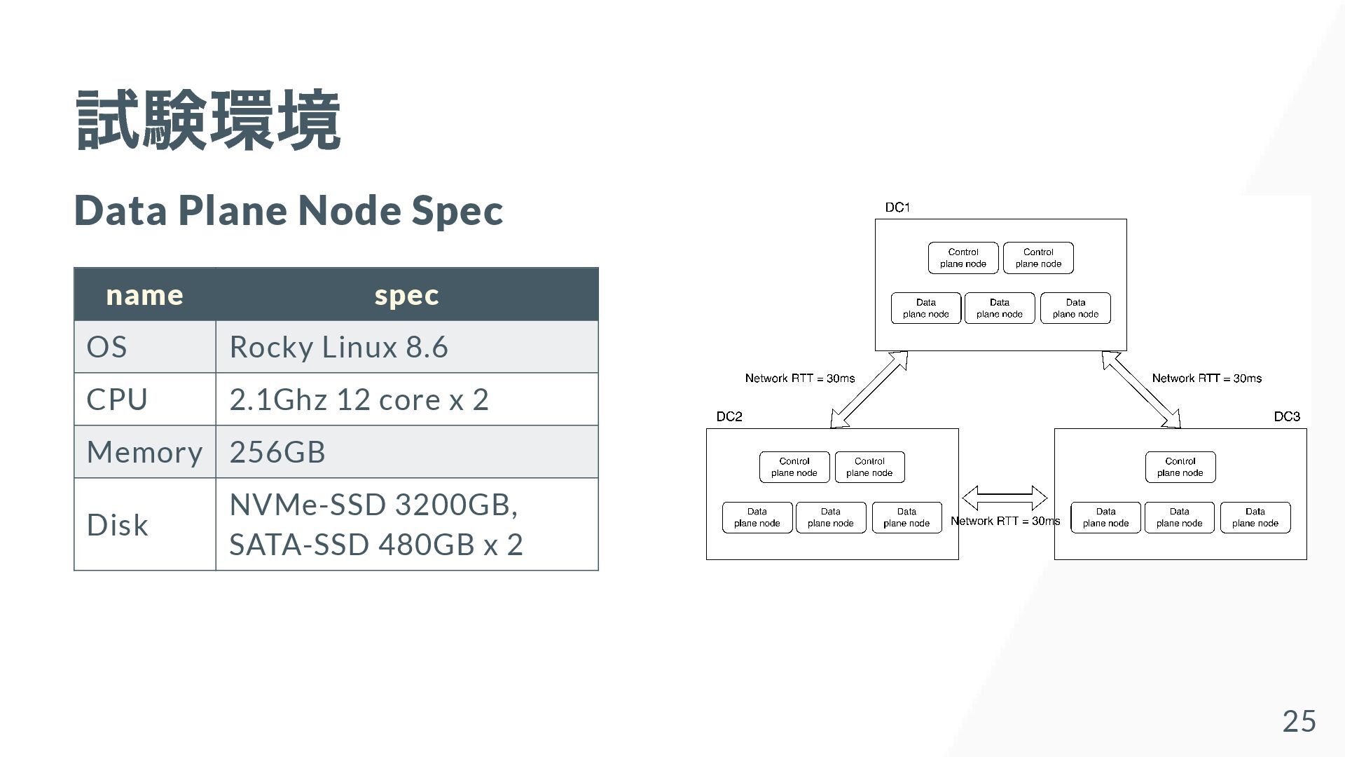 試験環境 Data Plane Node Spec name spec OS Rocky Linux