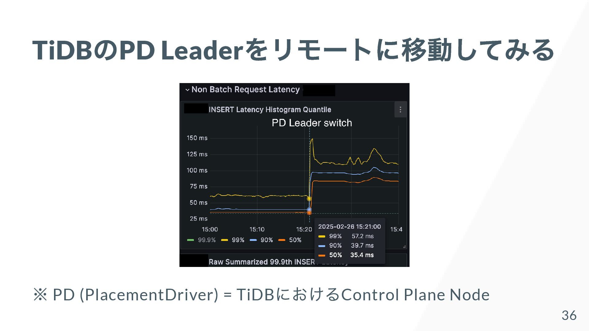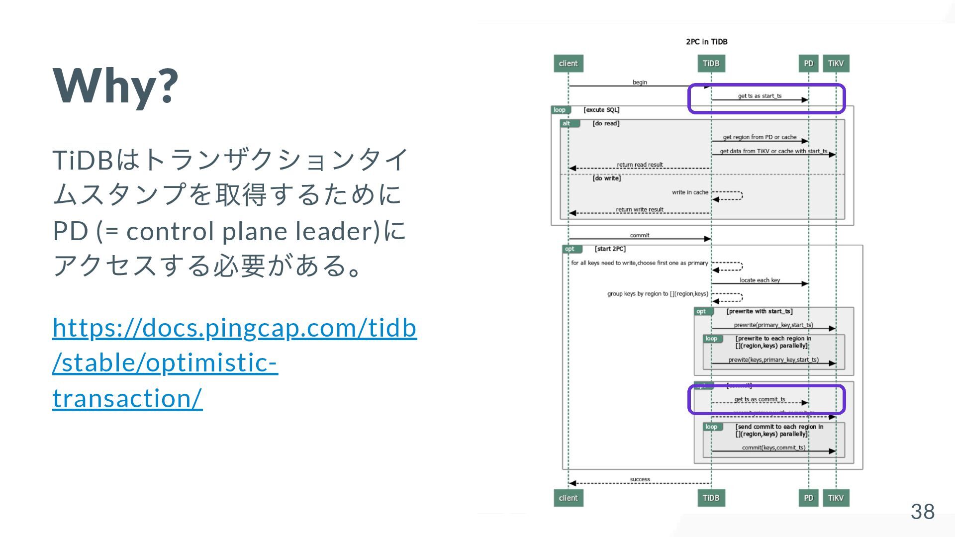 Why? TiDB はトランザクションタイ ムスタンプを取得するために PD (= control plane leader) に