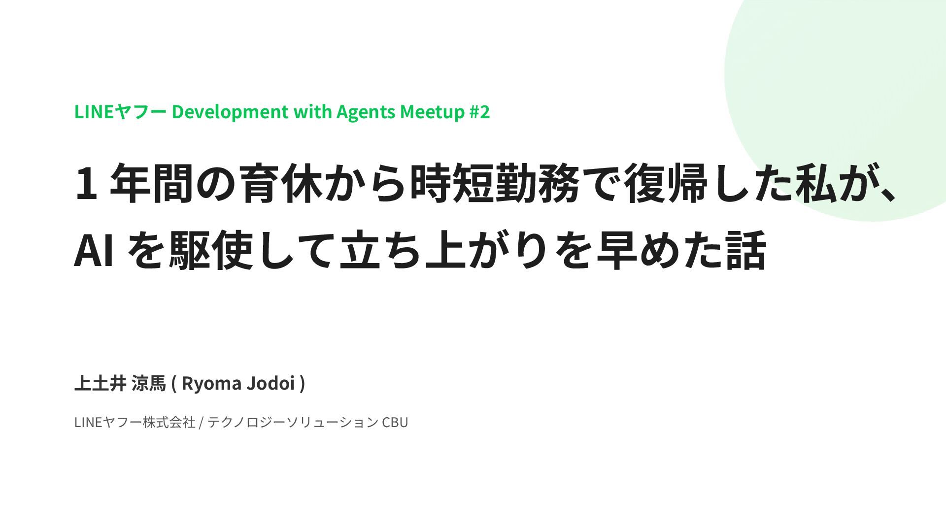 2026年2月24日に開催された「LINEヤフー Development with Agents Meetup #2」の登壇資料です。