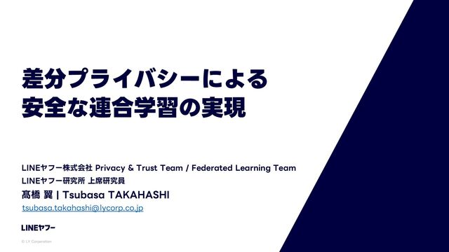 LINEヤフー株式会社 Privacy & Trust Team / Federated Learning Team LINEヤフー研究所 上席研究員 髙橋翼 Tsubasa TAKAHASHI