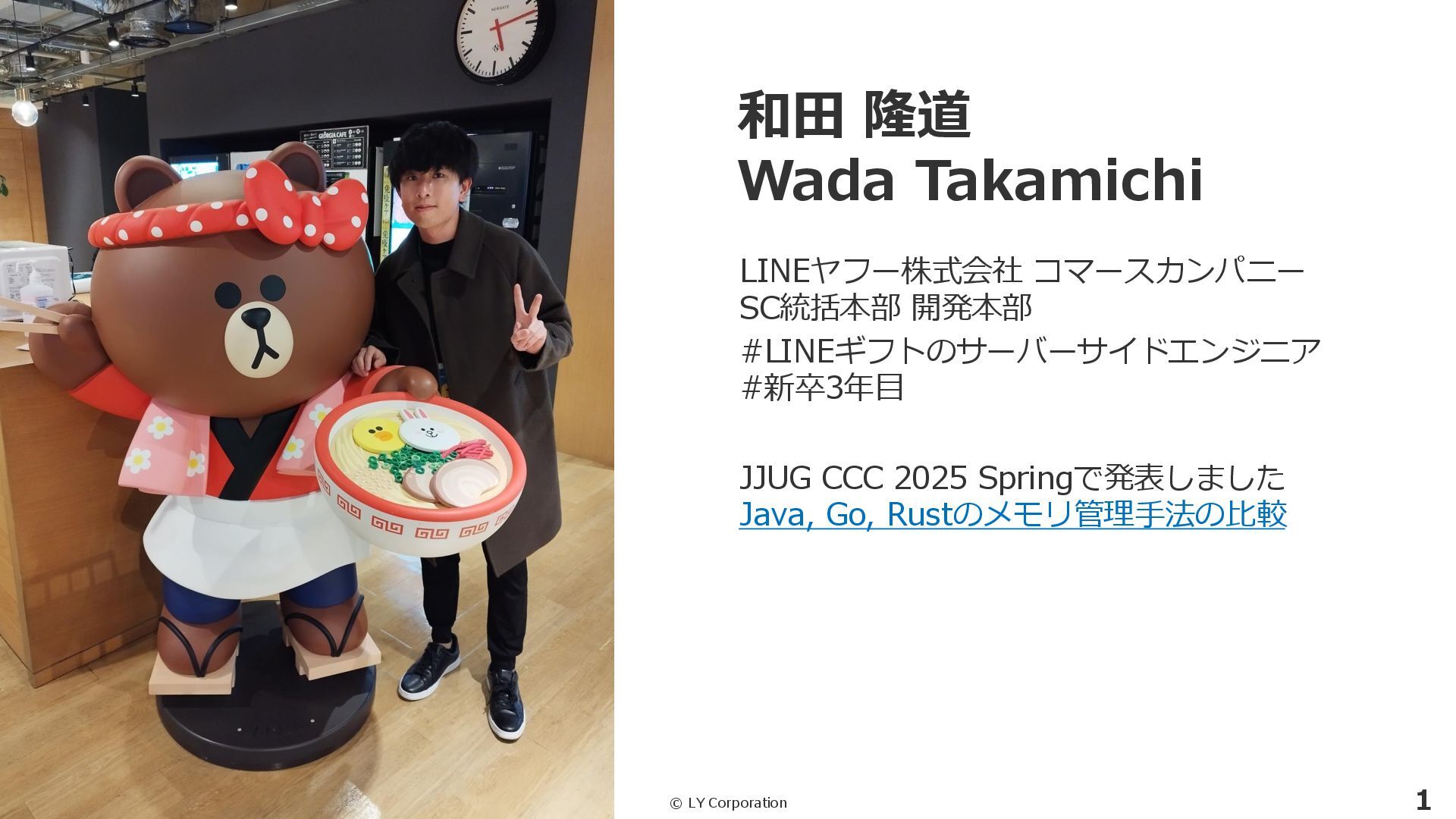 SC統括本部 開発本部 #LINEギフトのサーバーサイドエンジニア #新卒3年目 JJUG CCC 2025 Springで発表しました Java, Go, Rustのメモリ管理手法の比較