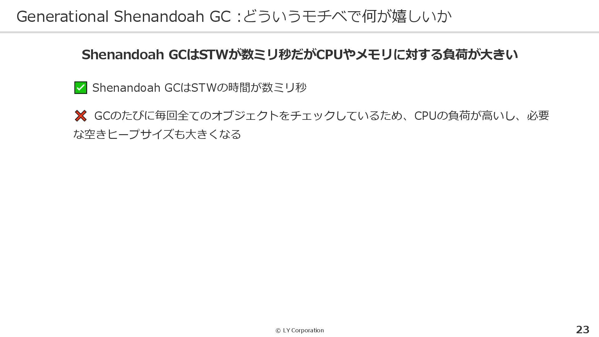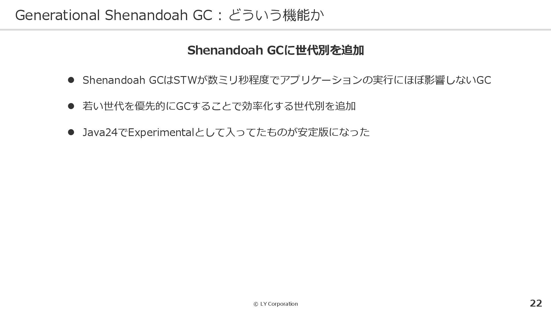 10. Generational Shenandoah GC : どういう機能か © LY Corporation 22 Shenandoah