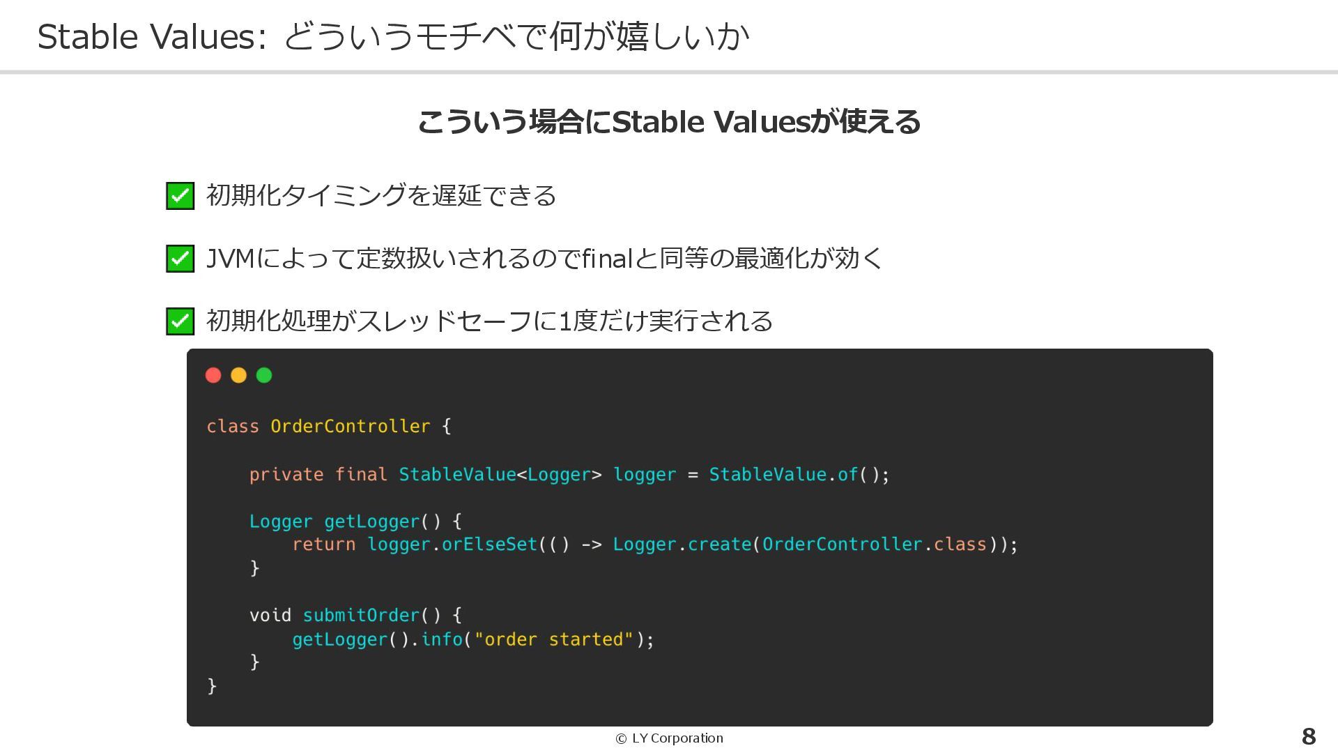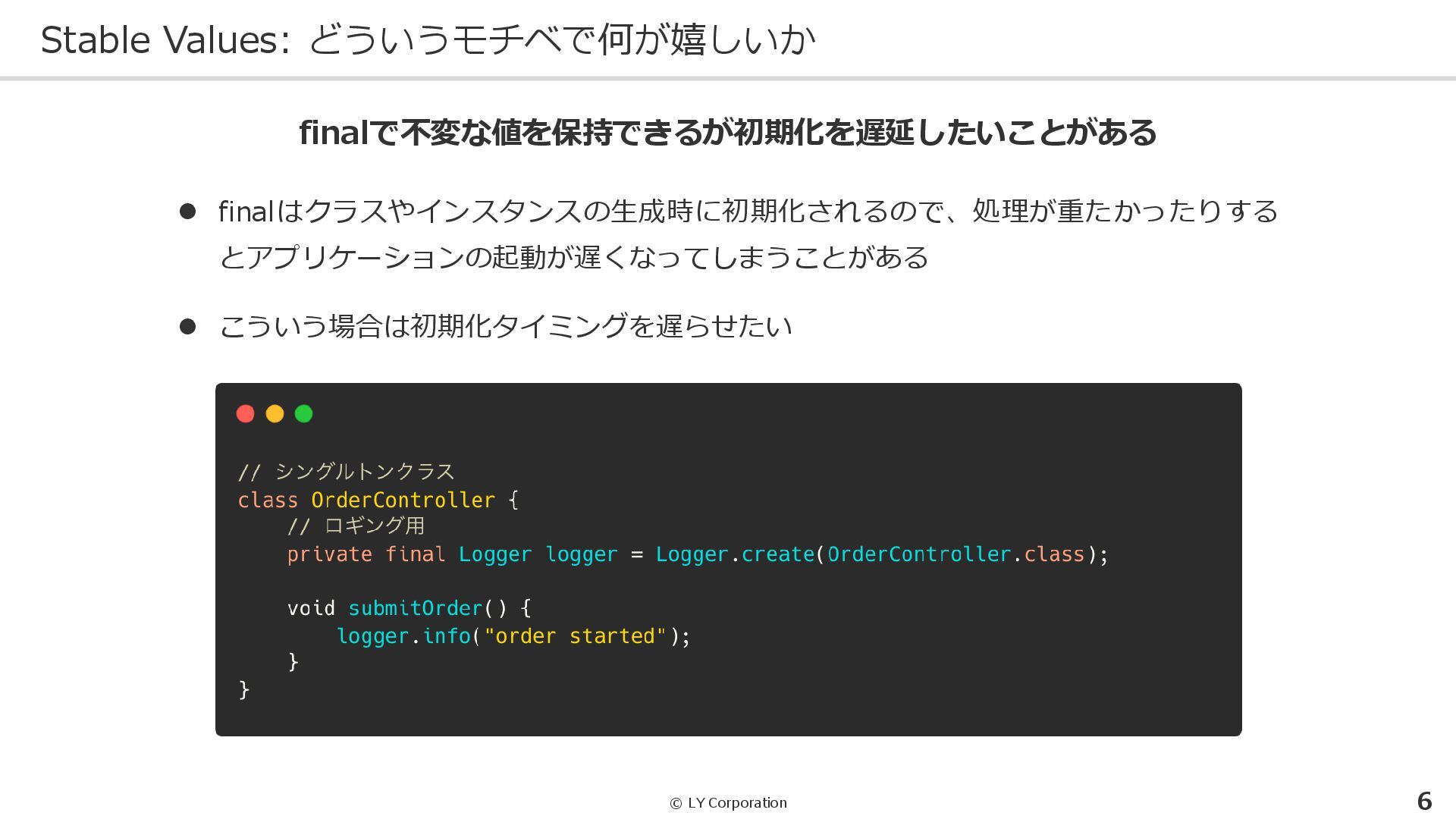 4. Stable Values: どういうモチベで何が嬉しいか © LY Corporation 8 こういう場合にStable Valuesが使える 初期化タイミングを遅延できる