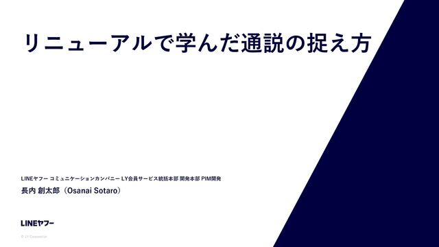 © LY Corporation LINEヤフー コミュニケーションカンパニー LY会員サービス統括本部 開発本部 PIM開発 ⻑内 創太郎(Osanai