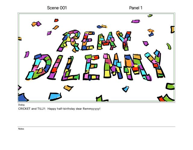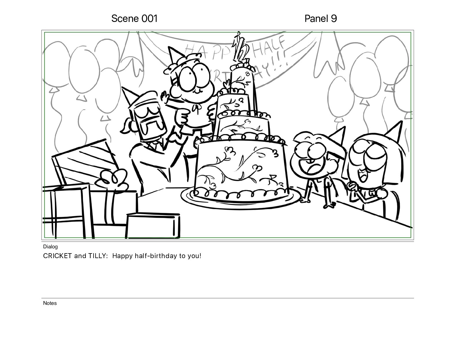 Scene 001 Panel 9 Dialog CRICKET and TILLY: Happy half-birthday