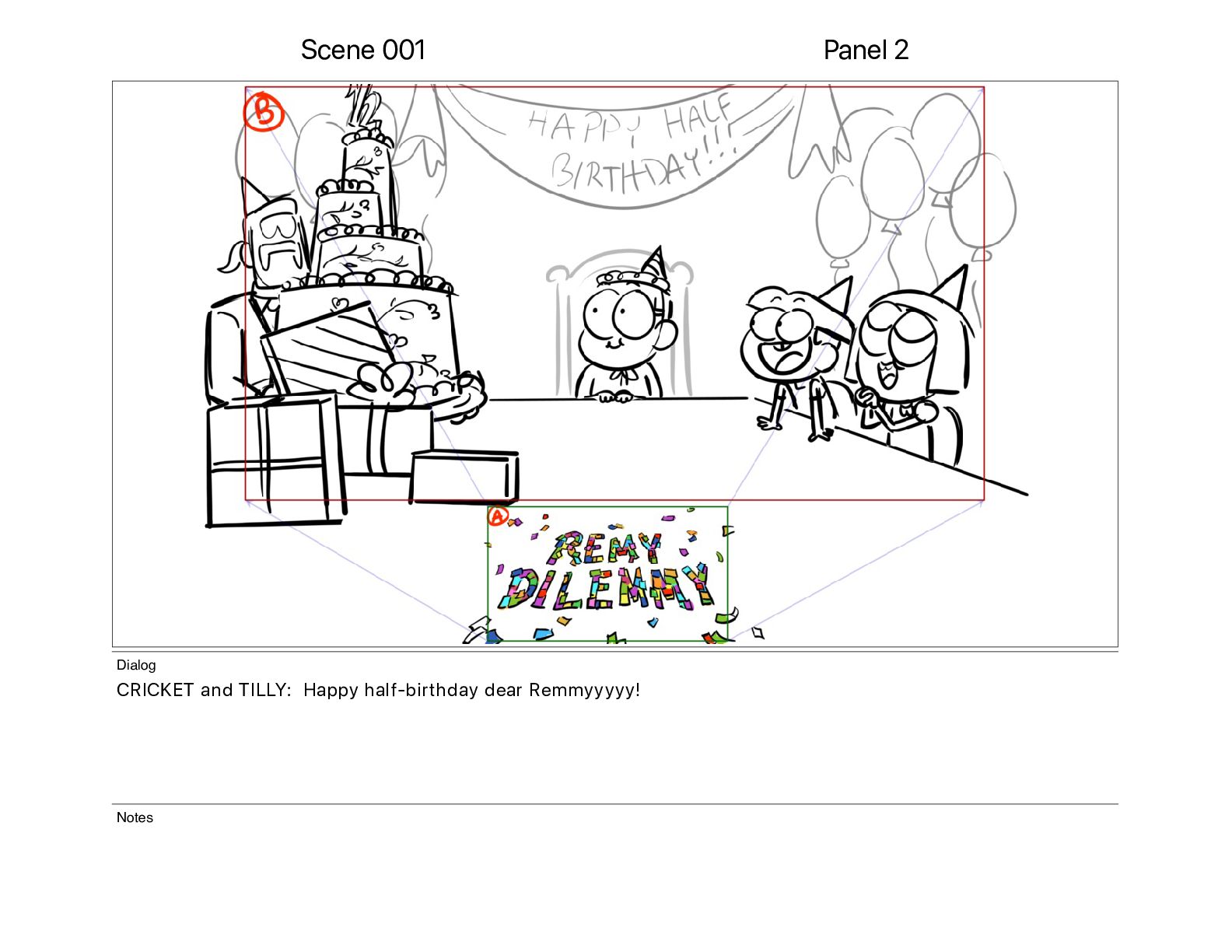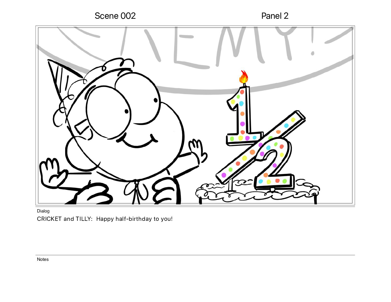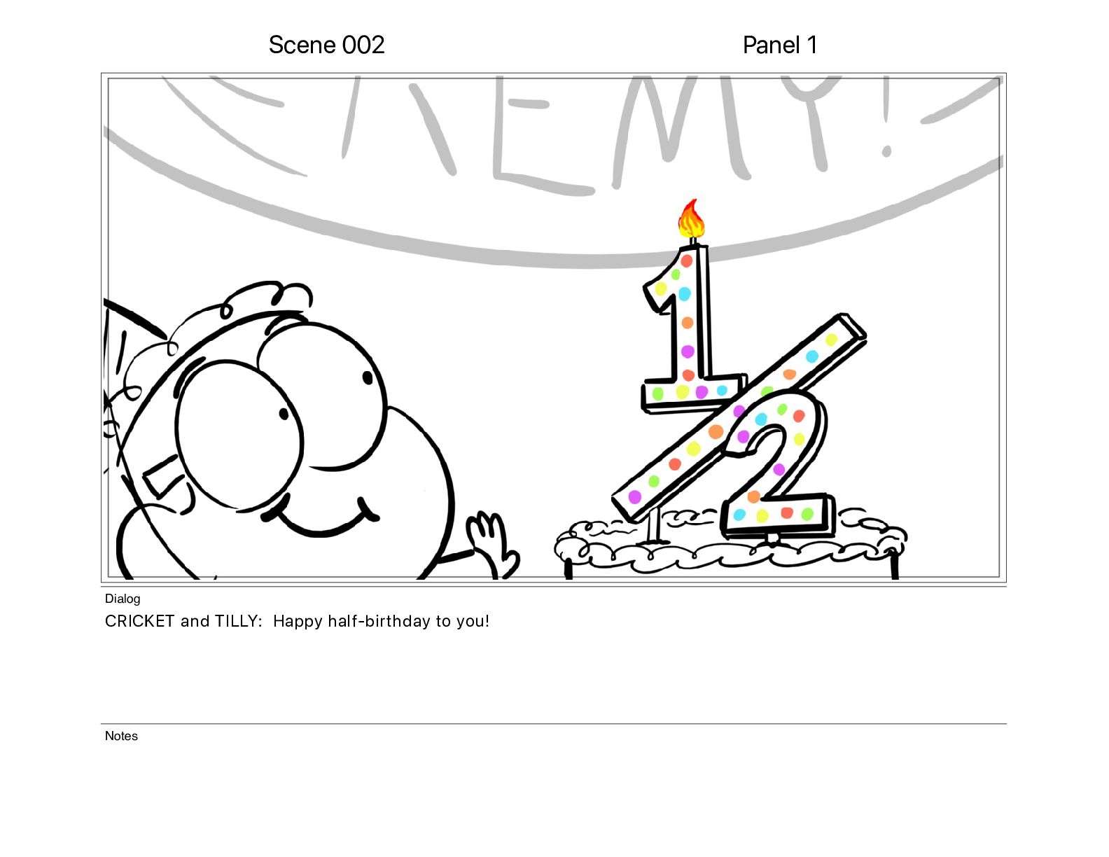 Scene 002 Panel 2 Dialog CRICKET and TILLY: Happy half-birthday
